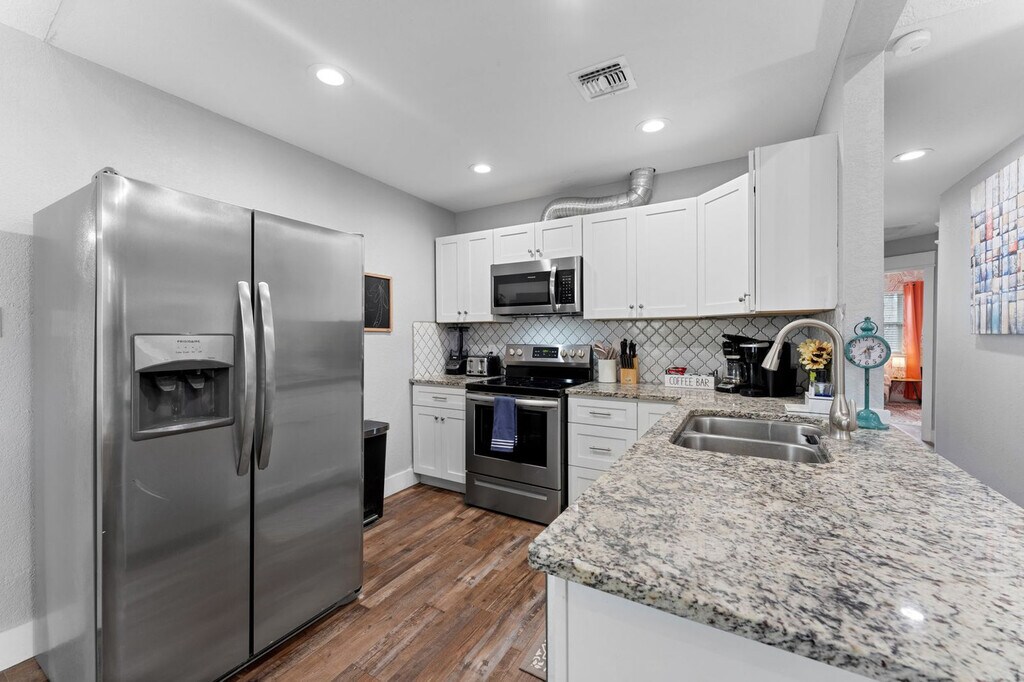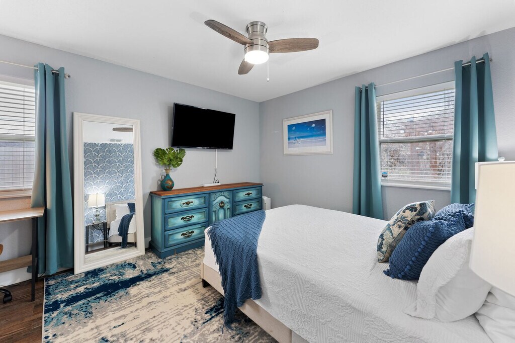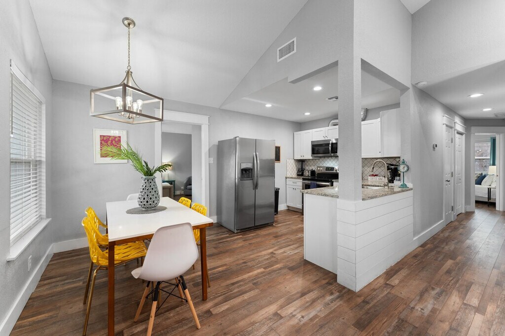 Escape to the warmth of this stunning 4-bedroom, 2-bathroom brick home, located less than a 5-minute drive from the picturesque Rockport Beach. Feel at home in the master bedroom featuring an attached private bathroom, while three guest rooms offer queen beds and 2 twin-size bunk beds. Step into the outdoor haven with a newly built pergola adorned with cozy patio furniture, a fire pit, and a sizzling charcoal grill. Welcome to Casa Blanca, your ideal family vacation home in Rockport, Texas. The master bedroom boasts a luxurious queen bed, a 42" Smart TV, and high-quality bedding for utmost comfort. The fully equipped kitchen includes a full set of non-stick pots and pans, baking ware, a coffee maker, and more, along with a starter pack of essentials. The living room offers seating for up to ten people, including two oversized couches and a 55" Smart TV with access to popular streaming services. Pets are welcome with a fee of $120 per stay per pet, with a maximum of two pets. For stays over 7 nights, a mid-stay cleaning is required and will be charged separately. Extended stays of 6 or more nights incur a $160 cleaning fee every week. A stacked washer and dryer with a large capacity is available for your convenience. Located in Rockport, Texas, this charming coastal town is perfect for those seeking a peaceful getaway. Enjoy proximity to Rockport's top attractions, including Rockport Beach, Fulton Mansion, Texas Maritime Museum, and Goose Island State Park. The neighborhood Casita Azul has a walkability score of 8 out of 10, making walking and driving the best modes of transportation. Pets must be kenneled and house trained, and kept off all furniture, bedding, sheets, and blankets, or a minimum cleaning fee of $100 will be assessed. All pets must be leashed outside, and pet waste must be disposed of properly. No smoking is allowed, with a $200 fine for violations, and no parties or events are permitted. Check-in is any time after 5 pm, and check-out is at 10 am. A $75 initial late fee applies for guests who do not check out by 10 am, with an additional $40 per hour thereafter. Trash must be placed in the provided receptacle, and any damages or broken house rules will incur charges. A video/audio doorbell device is present as a security measure. Registration Number: 511 [SI]