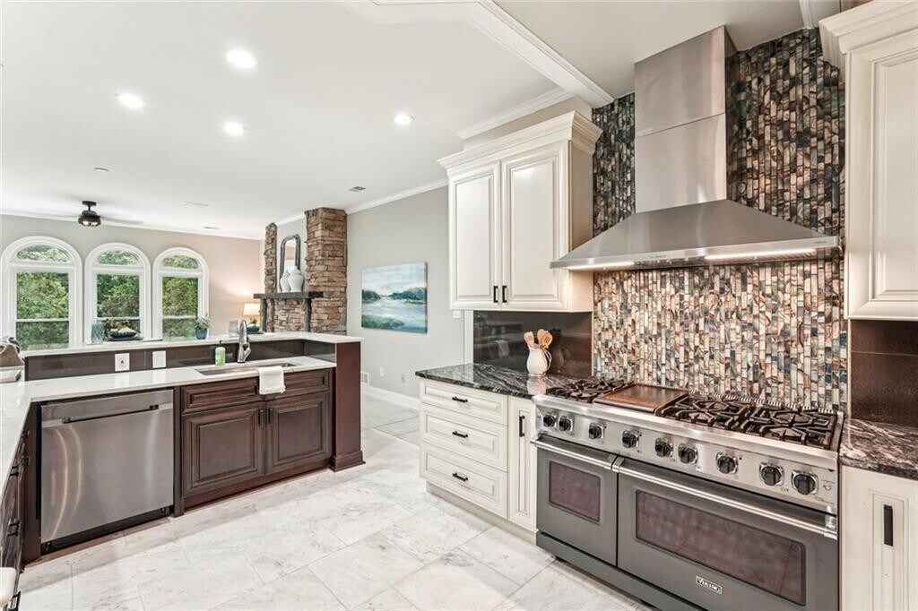 Tucked in Atlanta Country Club’s quiet interior,this refreshed renovation on an amazing golf course lot w/pool overlooks the 8th fairway. The ideal layout features three bedroom suites on the main floor and 2 add’l gabled rooms upstairs,including a fully-equipped Au Pair Suite with two additional bedrooms. Boasting loads of well-designed space,a fresh palette and updated lighting,this desirable hilltop presence and restful backyard perch above the greens is a must to enjoy. Flagstone entry leads to an expansive great room w/soaring ceilings and a stunning floor-to-ceiling double sided stone fireplace,all bathed in natural light,grounded in rich hardwoods,w/views of a private pool surrounded by foliage,and boasting a 150’ golf course backdrop. The spacious fireside owner’s suite includes an entry enclave ideal for a reading nook or virtual office,and French door pool terrace access - all tying to a refreshing spa-like bath w/solid stone vanities,rolling shower enclosure,soaking tub and truly endless walk-in closets. Working chef's kitchen boasts oversized quartzite island w/seating,Viking Range and Microwave Drawer,Samsung Bespoke Refrigeration,Separate Wine Cooler and Custom Serving Hatch … all seamlessly flanked in front by a sundrenched fireside living room,and in back by a oversized dining room w/graceful views of the lush pool terrace. French Doors lead from the great room,dining room and main floor bedrooms to an expansive expertly crafted flagstone terrace,intimate Gunite pool and screened gazebo,enveloping the senses in a resort-like outdoor oasis on the newly renovated ACC golf course. Landscaped for the ultimate in privacy,integrated w/gas for grilling,and fully-fenced,the home’s back is as spectacular as it is well-equipped. In front,a 2-car garage and tiered motor court make for ease of hosting. Upstairs boasts a balconied Au Pair / Teen Suite with add’l laundry,kitchen,great room,bath + 2 add’l bedrooms. A second balconied room sits opposite as an ideal bedroom retreat or home gym. Downstairs rec room has ensuite bath and French Doors to back yard. Choose to live the country club life,or simply enjoy all this amazing community and award-winning schools have to offer. MLS ID 7719560