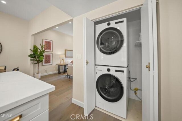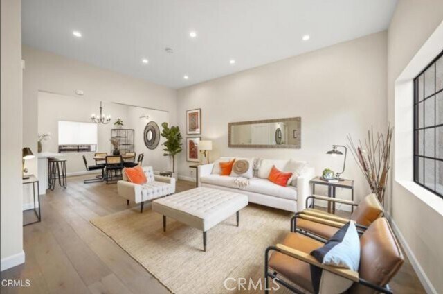 This wonderful townhouse features 2 bedrooms, 2.5 bathrooms plus an office/den and is within close proximity to an abundance of shopping, theaters, restaurants and grocery stores (such as Erewhon, Target and Trader Joe's). Enter through the private patio into the spacious living room, with ten-foot ceilings, recessed lighting and beautiful wood flooring. There is a spacious dining area off the newly renovated kitchen. The kitchen has stainless steel appliances, stone countertops with a breakfast bar and lots of storage. There is also a convenient laundry closet, complete with a new stackable washer and dryer. A powder room completes the main level of the home. On the second level, the primary suite has charming tree top views and a three-quarter bathroom with a skylight. There is a second bedroom off the hallway, plus an office/den and an additional full bath also with a skylight. Multiple built-in cabinets are also located in the upstairs hallway. Downstairs is a large, private attached two-car garage and there is a lovely pool in the complex. *Please note that the property is staged in the photos but the townhouse is being leased unfurnished. MLS# WS25281363