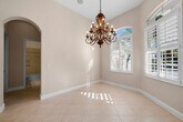 Custom 3 Bedroom plus den, 3 Bath, 3-car garage. Relax outside by the solar heated, screened pool and patio. High quality wood cabinetry and granite in kitchen and baths. Surround sound speakers, tinted windows, and plantation shutters throughout. Fountain highlights the new, resurfaced gorgeous pool and patio area. Located on one of the largest and most private lots in the guard-gated community of Cobblestone. The home is an ideal escape for sophisticated country living. The outdoor living space is both private and entertaining with a natural preserve behind the property. The spacious primary bedroom is accentuated with French doors leading to the pool/patio area with plantation shutters for privacy. Open floor plan with french doors to pool and patio.