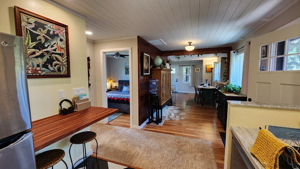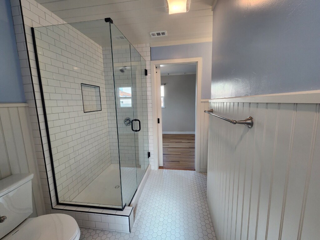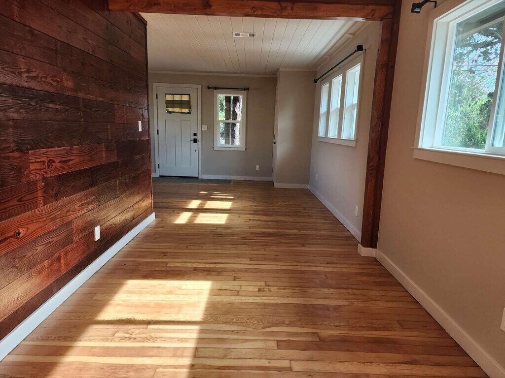 Beautifully renovated Craftsman style home for rent. Cozy 2 bed/2bath home built in the 1940's, this renovation includes a repurposed wood feature wall, real pine wood floors, 2 remodeled baths and a remodeled kitchen. Wood framed window sills and trim, tongue and groove wood ceilings throughout. Beautiful covered, composite wood front porch and side deck with stairs on either side. Brand new HVAC system, ceiling fan in one of the bedrooms, all new light fixtures, custom tile work, granite counters, all new stainless steel appliances including refrigerator. Stacked washer/dryer included. Tenant pays all utilities. Gardener included. This home feels brand new and is absolutely gorgeous! Located on the border of San Marcos, right around the corner from JOLI ANN LEICHTAG ELEMENTARY SCHOOL. Easy access to Vista & San Marcos shopping and restaurants. Please call Broker for prescreening and to schedule a showing. NOTE: applications will not be reviewed without calling Broker and viewing the property. Thank you!