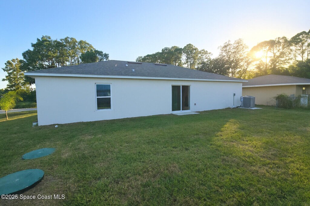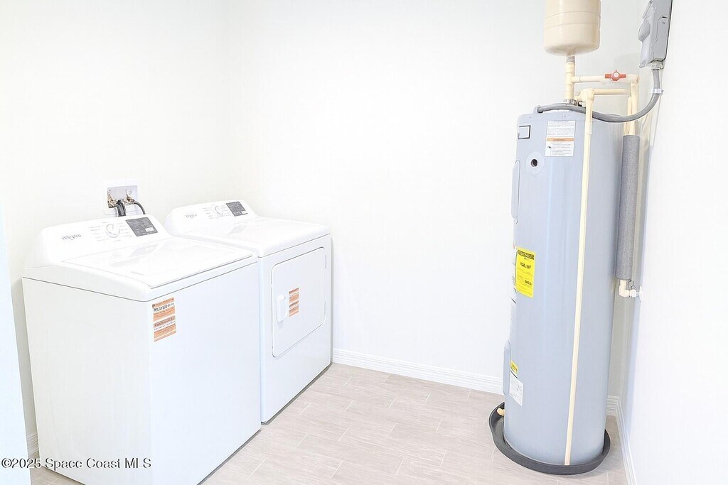 Beautiful brand-new home available for rent in a quiet and growing area of Palm Bay. This modern property offers 3 bedrooms and 2 bathrooms,including a comfortable primary suite with its own private full bathroom. The open living and kitchen layout features stainless-steel appliances,white cabinetry,and plenty of natural light. Home includes a washer and dryer along with a water softener system for added comfort. Enjoy a one-car garage with a long driveway and a large yard perfect for outdoor use. A new fence is currently being installed to provide added privacy. Conveniently located near Malabar Rd,I-95,shopping,schools,and parks. No smoking permitted inside the home. This clean,bright,move-in-ready home is an excellent option for anyone seeking comfort,convenience,and modern living.