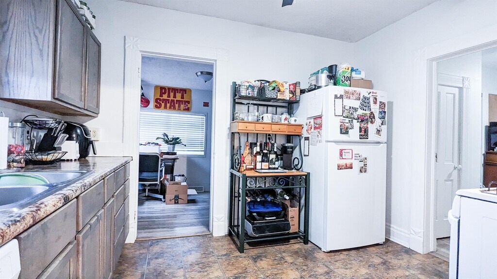 Available June 1st 2026. Adorable 2 bed 1 bath home with all new paint, flooring and kitchen. Appliances include refrigerator, dishwasher, oven/range, microwave/hood and clothes washer and dryer. Front bedroom has a large armoire, you can move wherever you'd like for clothes storage. The 2nd smaller bedroom has multiple closets! In the rear of the home is a large laundry/mud room that can easily double as an office. This is a dog-friendly property with a fenced backyard, storage shed and off street parking. Walking/biking distance to KSU and downtown Manhattan. Dogs must be over age 2 and be fixed. No cats. No smoking inside our outside of the home.