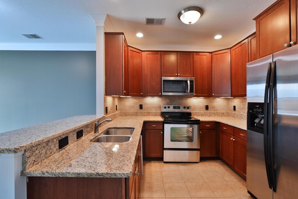 First month Free in 15 month lease. Spacious Third floor 1 bed / 1 bath condo with detached garage. Beautiful unit featuring a kitchen with granite countertops and stainless steel appliances,bathroom has been updated with walk in shower and laundry area comes with washer and dryer. Unit features acccess to pool and fitness facility.