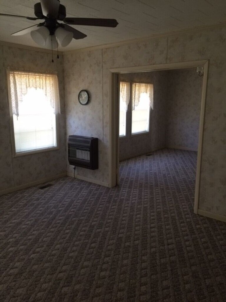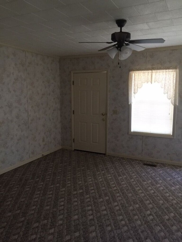 This is a quiet country home has nice sized rooms, central A/H, and gas space heaters to use as backup heat. Carpeted throughout, except for in the bathroom and kitchen, which both have linoleum. The kitchen is a good working size and there's a nice laundry room on the back. Although the fireplace doesn't work, the original brick and mantel are still in place- you get the authentic look with none of the hassle! A spacious front porch.