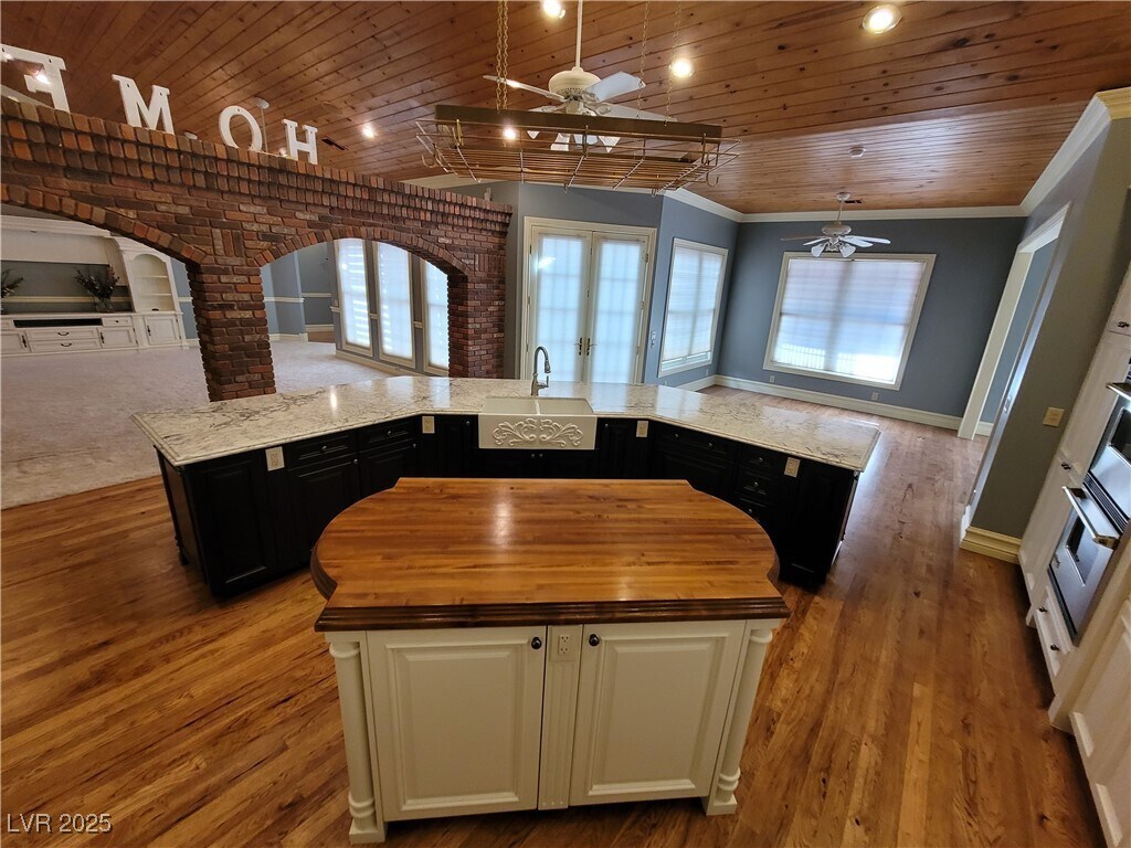 Discover this rare, beautifully upgraded single-story farmhouse with a finished walk-out basement—available for rent in Las Vegas! Featuring four spacious bedrooms and five bathrooms, this home offers an open layout with high-end finishes throughout. The newly renovated basement includes a 4th bedroom, a fully remodeled bathroom with custom tile shower and glass doors, plus fresh paint and new carpet in the game room. Enjoy movie nights in your private theater room, or utilize it as a game room with added features, with white shaker cabinets and butcher block countertops. Upstairs, the chef’s kitchen is a standout with custom cabinets, quartz countertops, a 48†gas cooktop, Sub-Zero built-in fridge, and rich hickory hardwood flooring. The primary suite features a modern, oversized custom-tiled shower. Step outside to a serene backyard with a tranquil pond and a fully fenced yard—perfect for relaxing or entertaining. Don’t miss out—homes like this rarely come on the rental market!