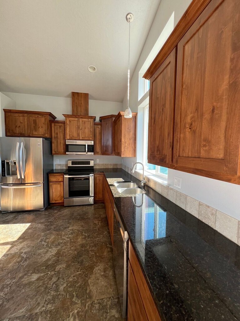 This beautiful 4-bedroom, 2-bath country home sits on a hill just outside of town, offering gorgeous views and a peaceful setting. The spacious kitchen features a large bar and plenty of room to gather. The private master suite includes a jacuzzi tub, walk-in shower, and walk-in closet. Enjoy paved walking paths around the home, small yard spaces, a two-car garage, full laundry room with washer and dryer, all major appliances, and two outdoor sheds. A rare blend of comfort, space, and scenery.