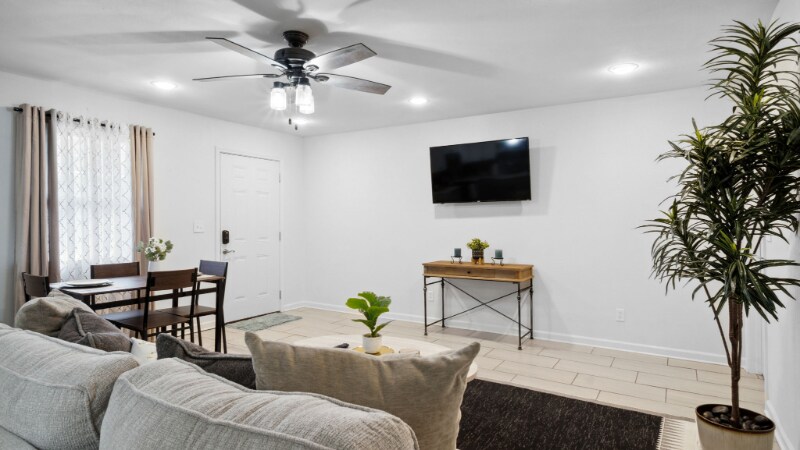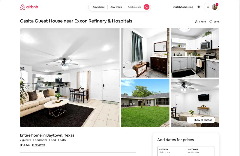 Property Id: 1572644 Cozy Casita with New Furniture - Perfect for Business Travelers! Highly rated (4.64) by previous short-term and mid-term tenants. Freshly furnished and painted in April/May 2024, this charming Casita offers the perfect blend of comfort and convenience. Located next to the main house (also an Airbnb), it is ideal for extended stays. The casita has its own private fenced backyard sitting area. One picture shows deck that is now fenced. Why stay in a cramped hotel when you can enjoy the comfort of your home? No events allowed, ensuring a peaceful retreat. Just 5 minutes from Exxon Baytown Refinery, Houston Methodist, and Altus Baytown Hospitals, it's a prime spot for business travelers. This fully-equipped Casita features a bedroom, spacious living room, bath, and kitchen. Essentials like groceries and dining are just around the corner. Comfortably sleeps 3 with a queen bed and pull-out sofa. Book now! This goes fast.