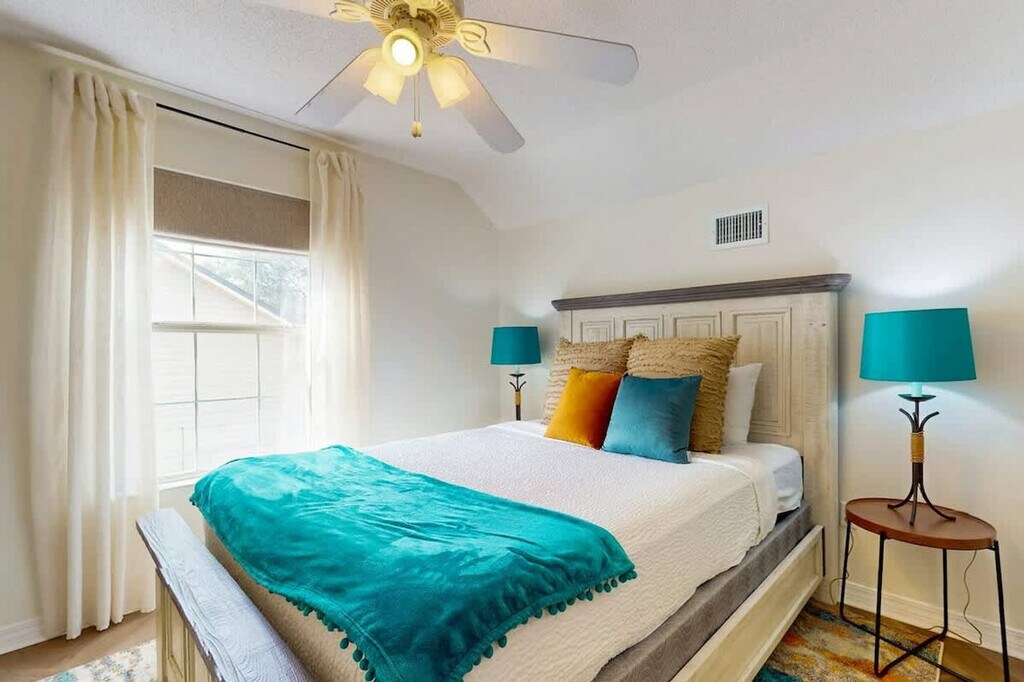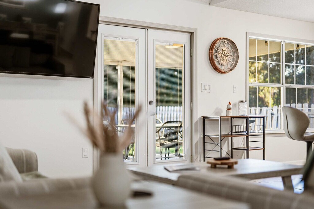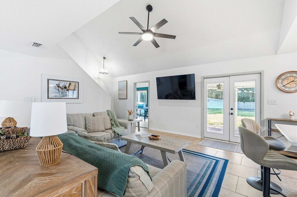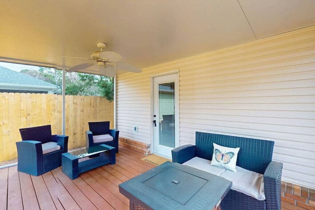 Feel at home in this spacious 5-bedroom, 2.5-bathroom Gulf Breeze retreat, accommodating up to 10 guests. This retreat offers over 2,500 sq ft of comfort and entertainment. The fully stocked kitchen makes home-cooked meals a breeze, while the large dining area and cozy living room create the perfect space for gathering and making memories. Step outside to enjoy the fire pit, ping pong table, and BBQ grill, ideal for evening hangouts under the stars. The fenced backyard offers privacy and a safe play area for kids, while multiple seating areas provide spots to unwind with morning coffee or sunset drinks. Ample driveway parking is available for four vehicles, with additional street parking. Nestled in a quiet, family-friendly Gulf Breeze neighborhood with tree-lined streets, this home offers a safe and relaxing environment. The area is primarily residential, offering a peaceful retreat while still being convenient to local shops, restaurants, and outdoor amenities. It’s perfect for guests looking to enjoy a calm, welcoming community while exploring all that the Gulf Coast has to offer. The home is just a short drive from Pensacola Beach and the following attractions: Gulf Breeze Zoo (4 min), Pensacola Beach Boardwalk and Pensacola Beach Gulf Pier (20 min), Downtown Pensacola (30 min), Naval Air Station Pensacola (45 min), Fort Pickens (44 min), Tiger Point Park (8 min), National Naval Aviation Museum (48 min), Gator Beach - The World's Greatest Alligator Park (53 min), The Boardwalk, Okaloosa Island (39 min), Sunset Children's Park Splash Pad (20 min), Naval Live Oaks Nature Preserve (16 min), The Graffiti Bridge (24 min), and Bayview Park (28 min). No parties or events are allowed. Quiet hours must be maintained between 10 pm and 8 am. Additional cleaning fees will apply for drug paraphernalia ($300), bodily fluid or waste ($300), glitter or confetti ($250), smoking ($250), unauthorized pets ($250), and dirty dishes ($100). If additional guests are brought beyond original reservation guest total and the host is not notified, the booking will be canceled immediately with no refund and guests will be required to leave the property. Any additional guests over the amount specified in the reservation (or pre-approved by the hosts) will result in a $75 fee per person. Failing to vacate the property by the posted/agreed upon checkout time will result in a $60 per hour (pro rated) late checkout fee. Dogs are not allowed on the furniture. [SI]