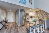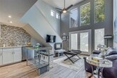 Live where style meets energy in this sophisticated two-story urban loft just steps from Knox Street, Lower Greenville, and the Katy Trail. Inside this gated boutique community, natural light pours through soaring windows and French doors that open to a Juliet balcony, blurring the line between indoors and out. The open-concept living area showcases vaulted ceilings, designer finishes, and a sleek electric fireplace—perfect for relaxing after a day in the city. The chef’s kitchen combines function and flair with granite counters, stainless appliances, and a freestanding metal island for casual dining or wine nights with friends. Upstairs, the loft-style primary suite feels like a private sanctuary, complete with a dedicated office nook, expansive walk-in closet, and tree-top views of the landscaped grounds. Every detail has been thoughtfully curated for comfort and convenience—washer, dryer, and refrigerator included, covered gated parking, and secure access throughout. Moments from White Rock Lake, Downtown Dallas, and the entertainment pulse of Henderson Avenue, this home offers a walkable, connected lifestyle with all the quiet sophistication of a private retreat.