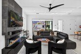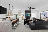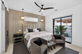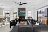 Escape to this modern desert oasis featuring 4 ensuite bedrooms including dual masters,a resort-style pool with swim-up bar,sunken firepit lounge with TV,BBQ area,and putting green. Enjoy high ceilings,quartz finishes,and seamless indoor-outdoor living with mountain views. Perfect for families or groups seeking luxury,relaxation,and entertainment in a private gated retreat. This property is new construction and the photos are mock ups from the architect. Actual photos of home to follow.