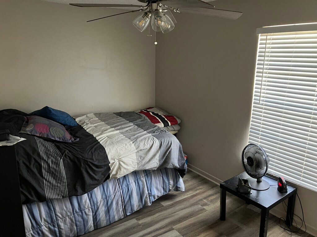 Room rental - 9 x 9 in Sunridge of Tampa Bay condo unit. Shared full bath and shared 1/2 bath. Rent includes electric, water, trash and sewer. Furnished living space. Extremely desirable location. Sunridge Palms is on 50th Street directly across from the east entrance to USF. Close to USF, I-75, & I-275. Sunridge is a clean and well maintained development with lots of parking and a Bullrunner and Hart Bus stop. BEDROOM with large closet shared full bath and half bath. Includes: Electric, Water, Sewer, Trash, Washer and Dryer, Stove, Dishwasher, Refrigerator, Microwave, and Pool.