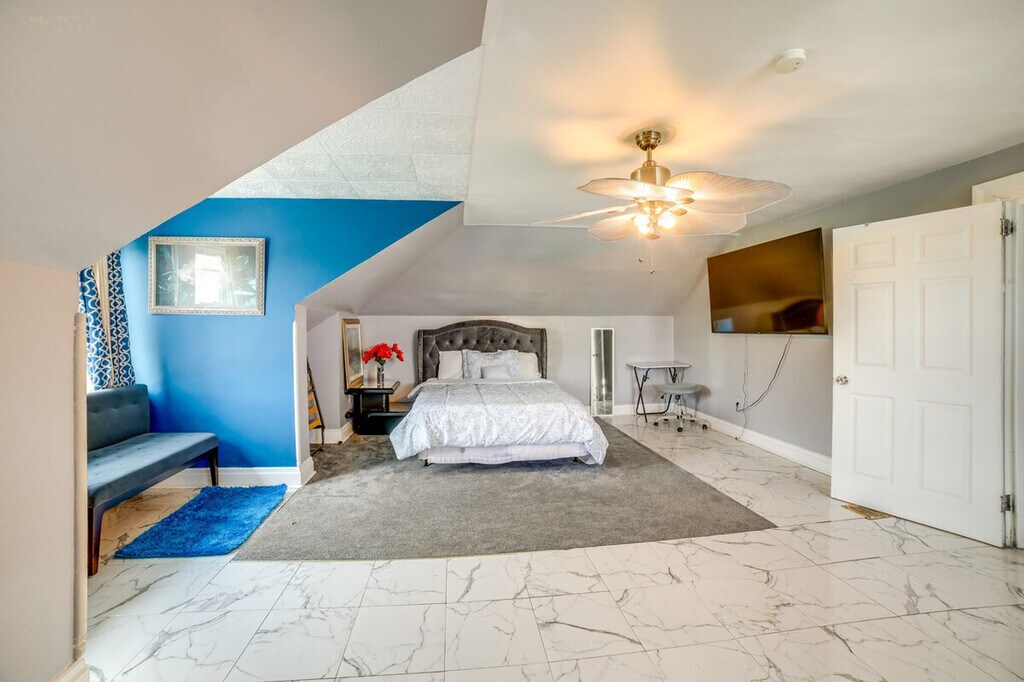 Plan your next family vacation and feel at home in this charming Pittsburgh apartment, located about 6 miles north of the downtown area. This apartment requires stairs to access and features 4-bedrooms and 1-bath. This comfortably furnished apartment features a fully equipped kitchen with a stove/oven, fridge, microwave, coffee maker, cooking basics, dishware and flatware, toaster, and mini fridge. It’s outfitted with conveniences like complimentary toiletries, central AC and heat, a hair dryer, an iron and board, trash bags and paper towels, and linens and towels. Entertainment options include 2 Smart TVs. Free street parking is available. Centrally located and near hospitals, this apartment is a great home base for exploring Pittsburgh. Catch a Penguins game at the PPG Paints Arena, explore the famous Andy Warhol Museum, or hop on the city bus to Market Square. Guests must be at least 25 years old to book. No pets are allowed. No events, parties, or large gatherings are permitted. Includes desk workspaces and free Wi-Fi. [SI]