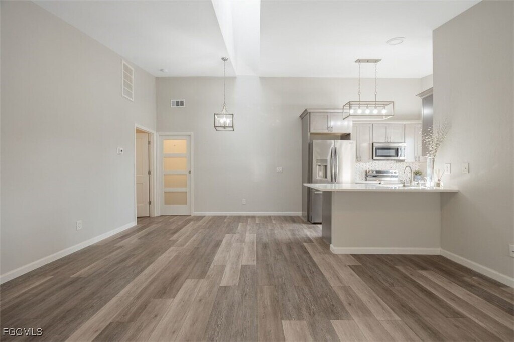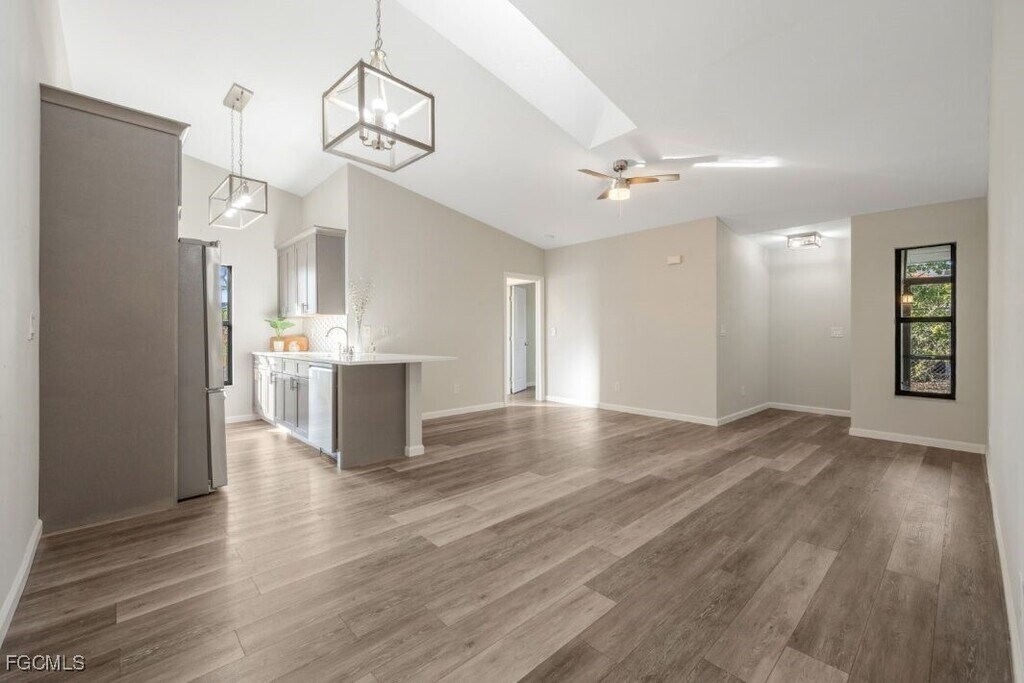 Welcome to this beautifully updated 2-bedroom,2-bathroom condo in the sought-after Courtyards SW community of SW Cape Coral. Ideally situated just minutes from Cape Harbour and Tarpon Point,this home is within walking distance to popular restaurants,shopping,and local attractions. Inside,you ll find a modern,fully renovated kitchen featuring brand-new wood cabinetry,stunning quartz countertops,and sleek stainless steel appliances. The entire condo boasts new lighting and stylish LVP flooring throughout,providing a fresh and low-maintenance living space. The Courtyards SW community offers residents access to a pool,community room,racquetball,and shuffleboard courts,ideal for staying active and social.