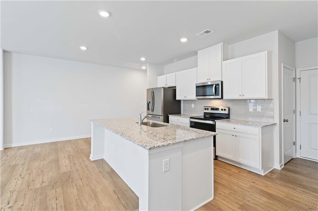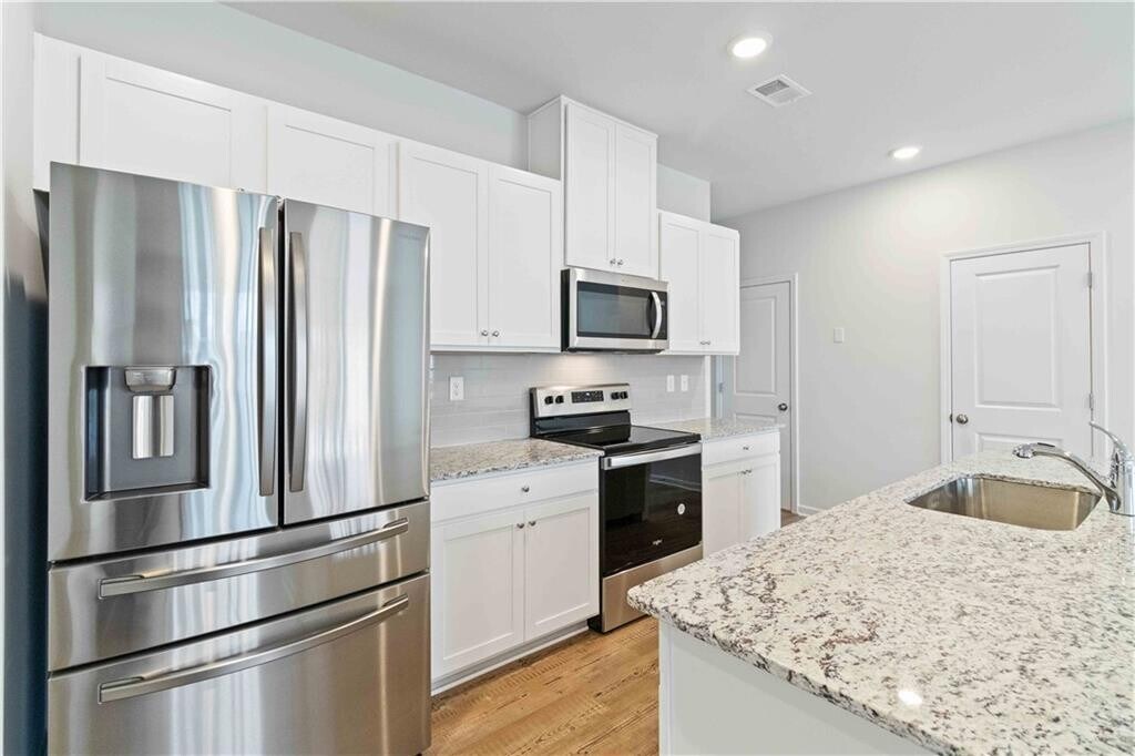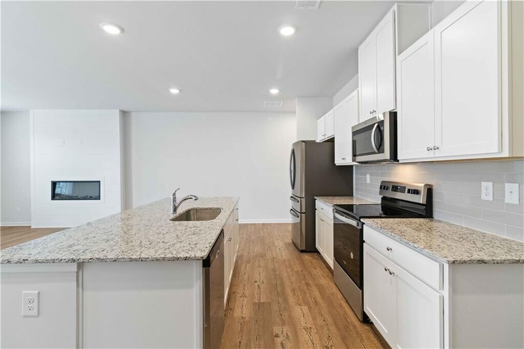 Welcome Home to this stunning new home in a new stunning townhome community. Be the first to live in this newly built,light,bright,and modern townhome. It features a modern open concept with unobstructed views of your main floor living area. The great room with its high ceilings and views to the large kitchen,invites you in to gather in front of the floor to ceiling fireplace. This welcoming space begs to be an enterainers home! The large kitchen island with granite countertops is where everyone will want to be. White cabinets and stainless steel appliance give this kitchen a timeless and chic look. Whether cooking family meals or hosting many,this layout offers a place for everyone to engage. The luxury vinly plank flooring ties the main level together into a lovely cohesive living space. Imagine barbecues and games of corn hole through the sliding glass doors from the family room out to the spacious backyard. The luxury vinly plank flooring ties the main level together into a lovely cohesive living space. The wow continues on the second floor! The generously appointed primary bedroom boasts a walk-in closet and primary bathroom where you will find perfect solace after a long day. This home offers two additional bedrooms,creating a perfect space for any number of uses. It offers function and style. The second floor laundry room is conveniently located close to the bedrooms. As if all of this were not enough,the community is conveniently located within walking distance to local shopping and entertainment. Come make this house your home!