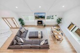 Welcome to the ultimate in beachside living at 5113 Whitecap Street--just moments from the sand in the highly sought-after Oxnard Shores community. This fully remodeled 3-bedroom, 3.5-bath coastal retreat has been thoughtfully transformed with luxurious finishes, timeless design, and all the modern upgrades you could ask for.The spacious primary suite is located on the main level, offering a beautifully renovated ensuite bathroom and ultimate privacy. Upstairs, two additional bedrooms each feature their own ensuite bathrooms, perfect for family, guests, or a dedicated home office. One of the upstairs bedrooms opens to an expansive private deck through a dramatic oversized slider--an ideal space to relax under the sun or entertain beneath the stars.Inside, the home boasts stunning engineered wood flooring throughout, smooth new natural plaster walls, recessed LED lighting with dimmer switches, and custom window shades on every window. The heart of the home is the open-concept great room and dining area, centered around a striking marble fireplace with an automatic switch for effortless comfort. The remodeled kitchen is truly a chef's dream, featuring natural honed quartzite countertops, all-new custom cabinetry, a top-of-the-line Wolf range, Sub-Zero refrigerator, farmhouse-style sink, and a stylish mini bar with a wine fridge and accent lighting. The home is also wired for whole-house audio, creating the perfect environment for entertaining or relaxing.Every detail has been considered, including all new windows and sliders, a brand-new heating and air conditioning system, and built-in closet systems in every bedroom, complete with quartz-topped dressers and shelving. Outdoors, enjoy low-maintenance landscaping illuminated with landscape lighting and additional accent lights, a cozy firepit, a new concrete driveway with elegant pavers, and direct access to an oversized garage with an epoxied floor. There's also convenient RV parking on one side and two-car parking on the other, along with a dedicated laundry area that includes full hookups and a utility sink. The home is even pre-wired for outdoor security cameras, offering peace of mind along with unparalleled style.From the new roof to the freshly painted interior and exterior, this home has been completely refreshed and reimagined with no detail overlooked. Whether you're looking for a permanent coastal haven or the ultimate weekend escape, 5113 Whitecap Street offers the very best of California beach living--effortless, elegant, and just steps from the shore.
