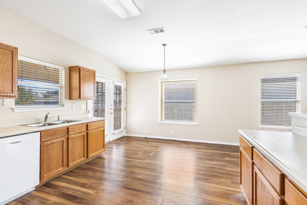 Welcome to 5114 Crestwood Hill Drive, a beautifully refreshed home nestled in the gated Woodlake Park community of San Antonio. This single-story charmer offers an open and airy floor plan with brand-new appliances, updated sink faucets, new toilets, and fresh paint throughout, creating a bright, move-in-ready atmosphere. The spacious living area flows seamlessly into an eat-in kitchen that's ideal for gatherings, while vinyl plank flooring adds a clean, modern touch. The primary suite offers comfort and privacy with its full bath and walk-in closet, complemented by two roomy secondary bedrooms perfect for family or guests. Step outside to a covered patio and fenced yard surrounded by mature trees-an inviting retreat for morning coffee or evening relaxation. Conveniently located near major highways, military bases, shopping, and dining, this home delivers the perfect blend of comfort, convenience, and style in one of the area's most accessible communities
