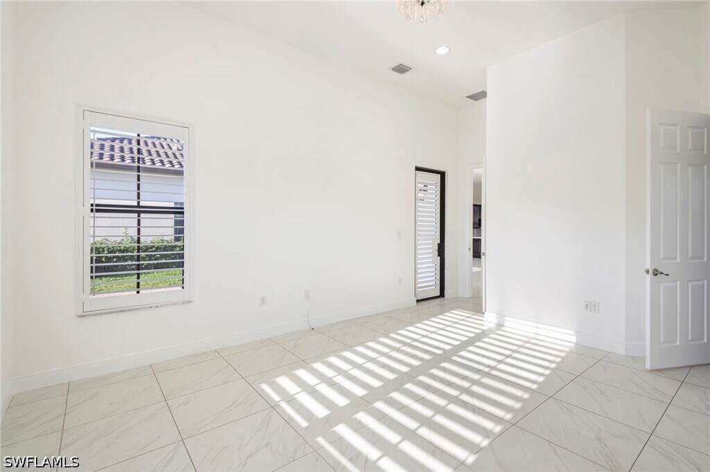 Welcome home to 5114 Genoa St in Ave Maria,featuring the popular Almanor floor plan. This well-appointed single-story home offers 3 bedrooms,2.5 bathrooms,a 2-car garage,and 1,929 sq. ft. of living space,ideally situated on a premium corner lot. Designed for comfortable living and entertaining,the home showcases soaring 12-foot ceilings,abundant natural light,large-format tile flooring throughout the home,crown molding,and plantation shutters. The spacious kitchen is the centerpiece of the home,complete with upgraded cabinetry with crown/valance detail,thick quartz countertops,subway style backsplash,and enhanced recessed lighting. The primary suite offers a relaxing retreat with an oversized walk-in closet and an en-suite bathroom featuring dual vanities and a large soaking tub with separate large shower. Conveniently located near Ave Maria’s town center,residents enjoy easy access to shopping,dining,community events,and Ave Maria University. Maple Ridge residents have access to The Club at Maple Ridge,offering a resort-style pool,fitness center,pickleball courts,grilling area,sauna,and more,along with nearby parks,trails,sports courts,and everyday conveniences.