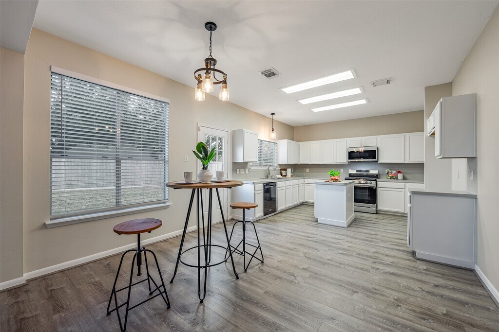 Move-in ready 2,384 sq ft,3-bed,2.5-bath home in Countryside! Freshly updated with new vinyl plank flooring,paint,lighting,and ceiling fans. New high-efficiency AC with Nest thermostat,stainless steel gas range,and microwave. Open kitchen with island,freshly painted cabinets,and walk-in pantry flows into breakfast and family rooms—perfect for gatherings. Cozy gas-log fireplace in light-filled living room with abundant windows. Spacious 21x19 primary suite with refreshed bath,including new fixtures. Secondary bedrooms offer walk-in closets,one with a versatile flex room. Secondary bathrooms have new toilets and fixtures. Separate study with double doors for work or relaxation. Large fenced backyard on corner lot with 2-car garage. In top-rated Clear Creek ISD,steps from community park and pool. Ready for you—tour today! MLS# 69184274