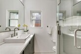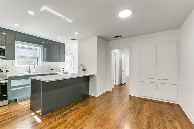 Step into this completely remodeled home through the Saltillo tiled foyer, where you'll find a private office and a Living Room with a fireplace, new energy-efficient low e bay windows, and recently refurbished hardwoods. The space is illuminated by canned lighting, creating a warm and inviting atmosphere. Transition from the Living Room to the open Kitchen and Dining Room, which boasts Euro-style cabinets, a 2024 installed Fridge, DW, Gas Range, Stacked WD and luxurious Quartz countertops. The Dining Room offers enclosed cabinets. The Bath features a glass-enclosed shower, quartz vanity, and elegant porcelain tile flooring. Upstairs, the Bedroom includes three large closets and new carpeting, while the Downstairs Bedroom showcases hardwoods, two closets, and direct access to the backyard. Experience the perfect balance of convenience and charm in a tranquil neighborhood setting. 5117 truly embodies the best of both worlds - a serene oasis in the heart of a vibrant Dallas neighborhood.