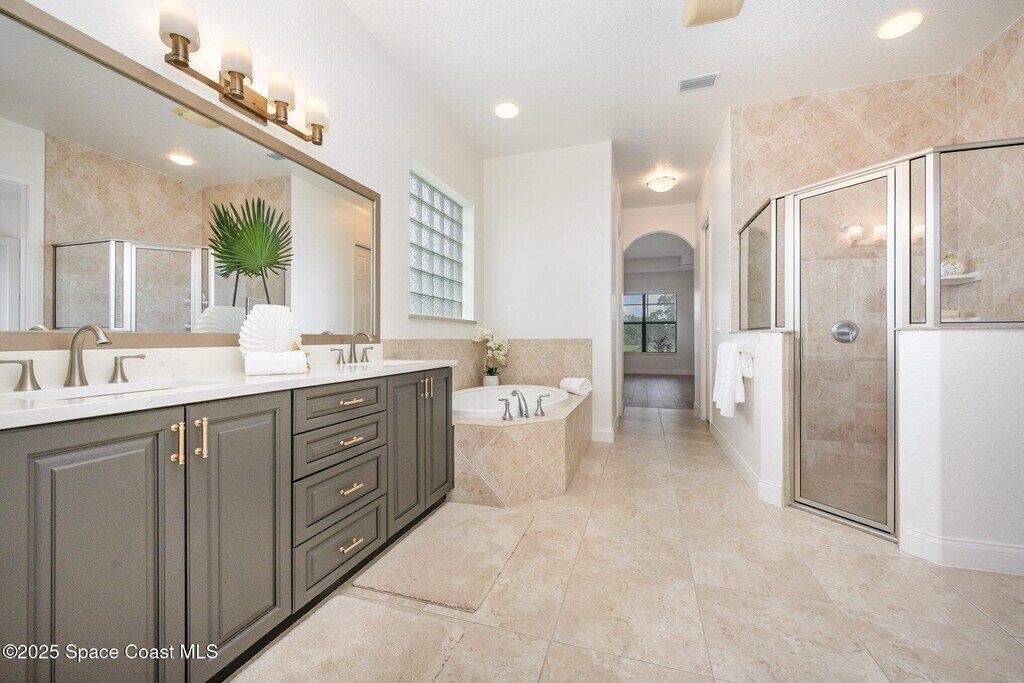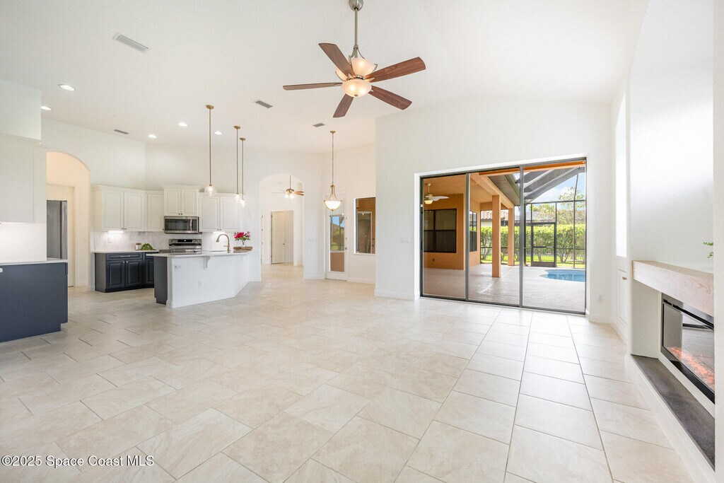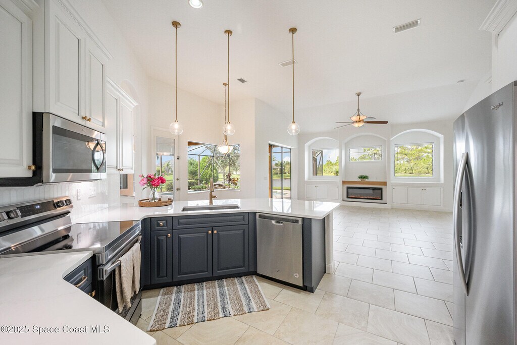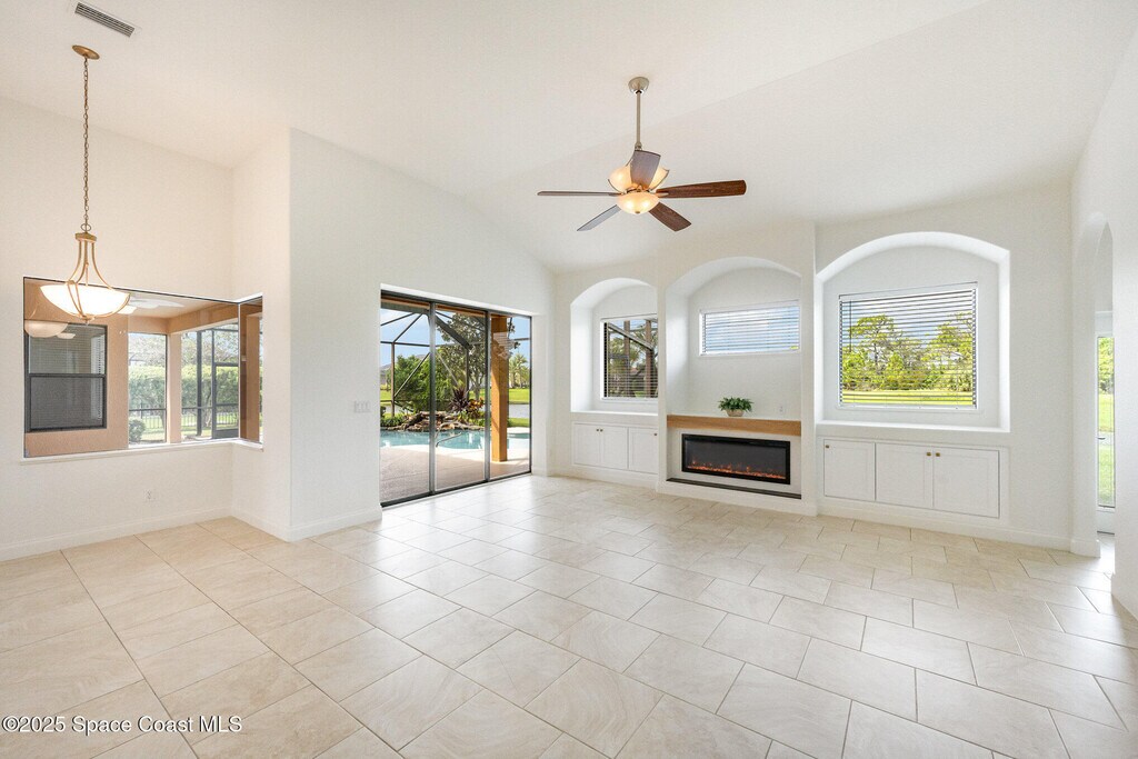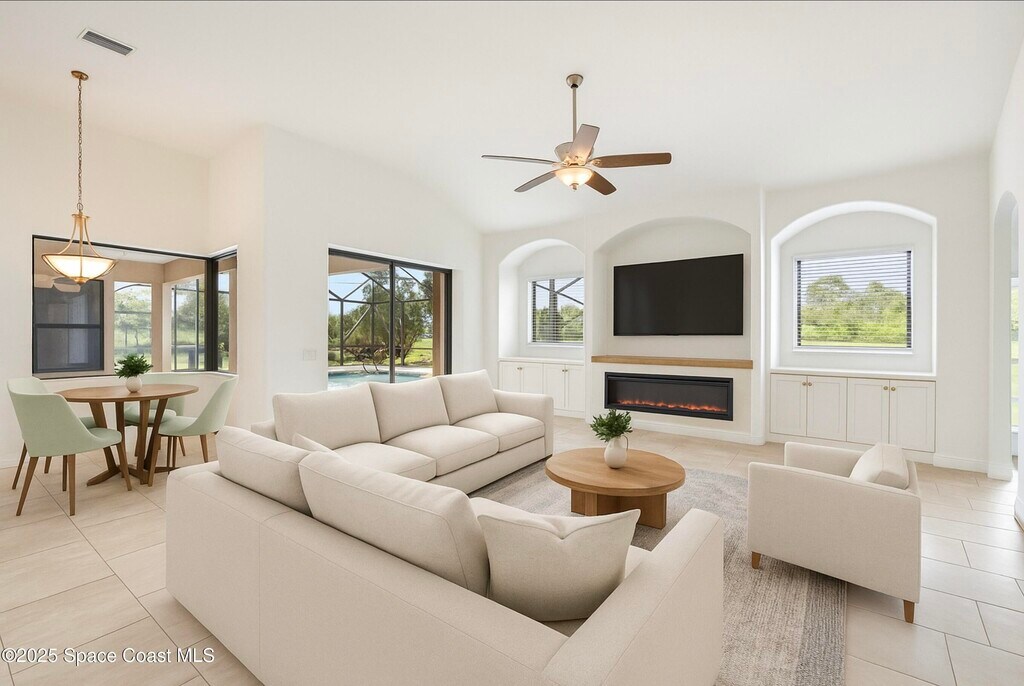 Discover luxury living in this exquisite 4-bedroom plus den,3-full bath home featuring breathtaking lake views and unparalleled privacy with preserve behind. Unwind by your spectacular pool with dramatic rock/stone waterfall while enjoying magnificent sunset views from the expansive pool deck. The gourmet kitchen showcases upgraded cabinetry and elegant quartz countertops,while brand new wood-look tile flooring flows throughout the home.The impressive master suite boasts his and her walk-in closets for ultimate convenience. Additional highlights include an electric fireplace/TV wall with custom built-in cabinetry and quartz countertops extending into all bathrooms. Located in Viera's most desirable upscale gated community,residents enjoy resort-style amenities including an Olympic-size community pool,tennis courts,soccer field,and playground.Prime location offers easy access to premier shopping and dining,making this the perfect blend of tranquil retreat and convenient lifestyle.