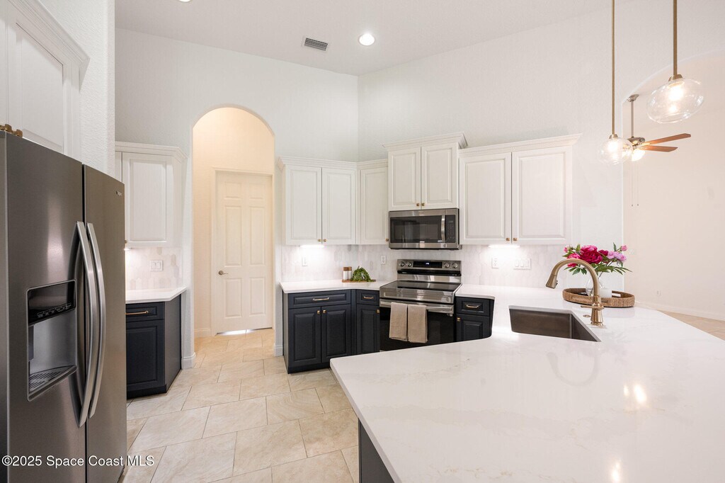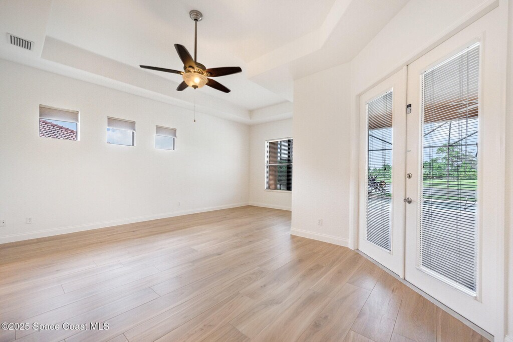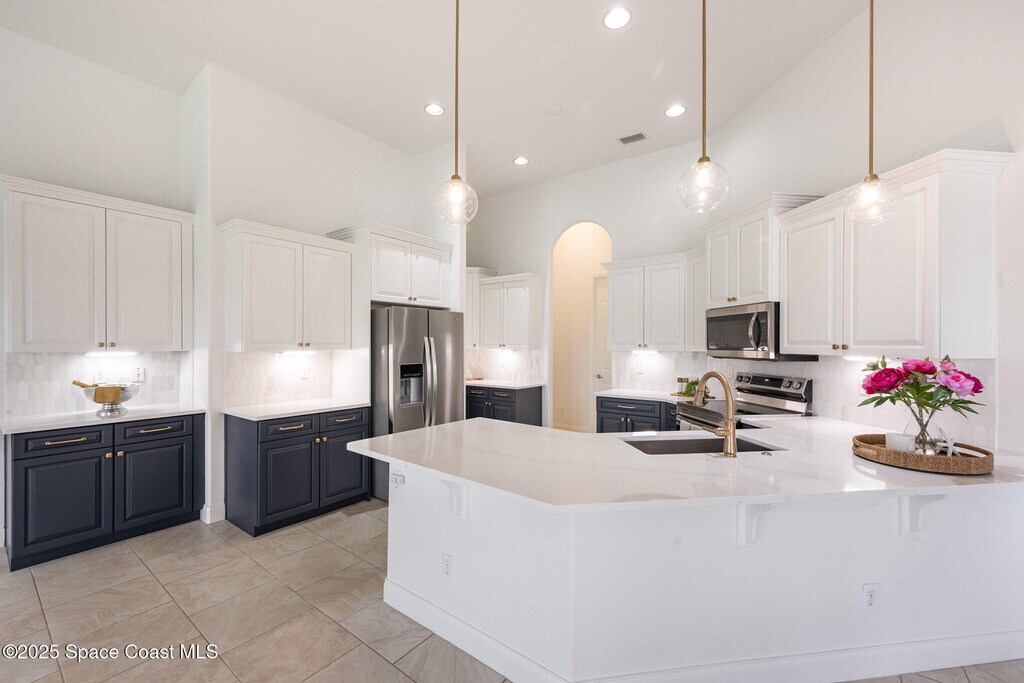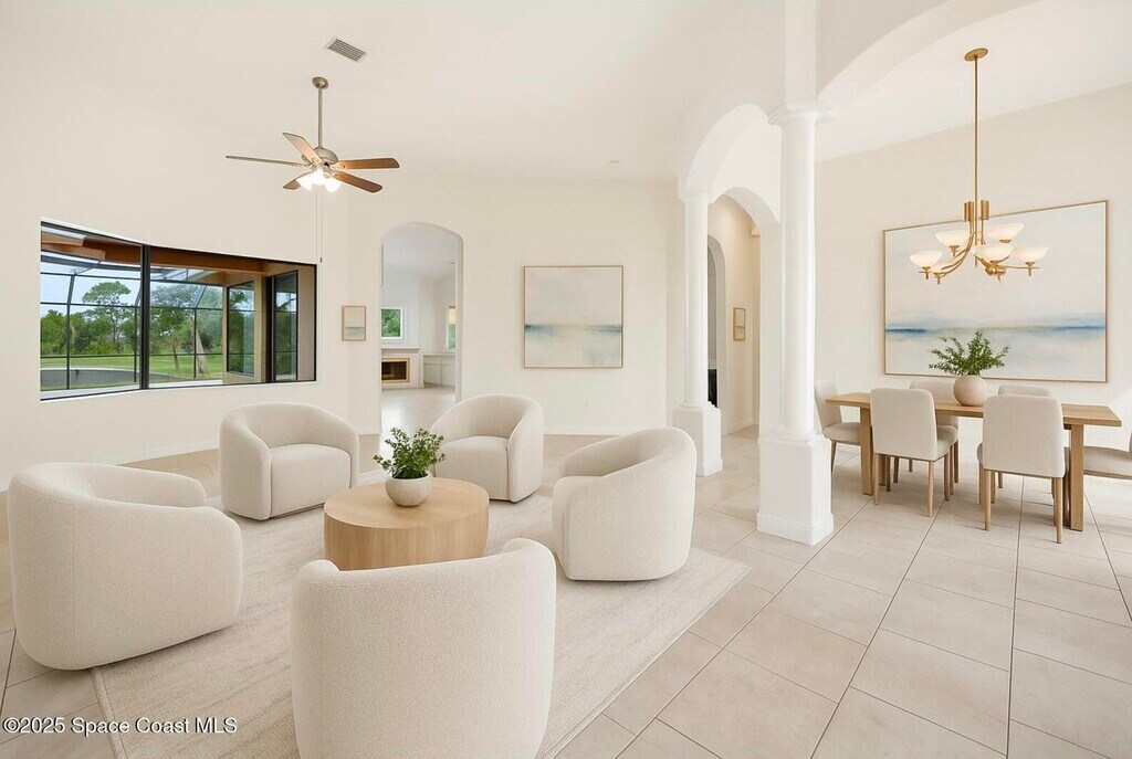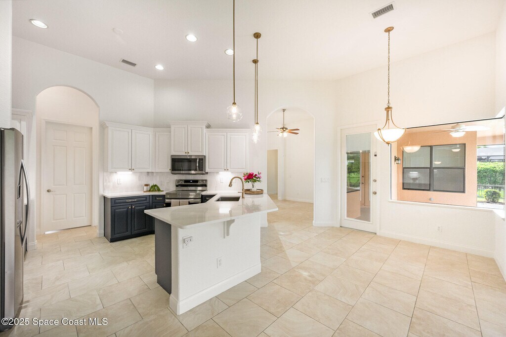 Discover luxury living in this exquisite 4-bedroom plus den,3-full bath home featuring breathtaking lake views and unparalleled privacy with preserve behind. Unwind by your spectacular pool with dramatic rock/stone waterfall while enjoying magnificent sunset views from the expansive pool deck. The gourmet kitchen showcases upgraded cabinetry and elegant quartz countertops,while brand new wood-look tile flooring flows throughout the home.The impressive master suite boasts his and her walk-in closets for ultimate convenience. Additional highlights include an electric fireplace/TV wall with custom built-in cabinetry and quartz countertops extending into all bathrooms. Located in Viera's most desirable upscale gated community,residents enjoy resort-style amenities including an Olympic-size community pool,tennis courts,soccer field,and playground.Prime location offers easy access to premier shopping and dining,making this the perfect blend of tranquil retreat and convenient lifestyle.