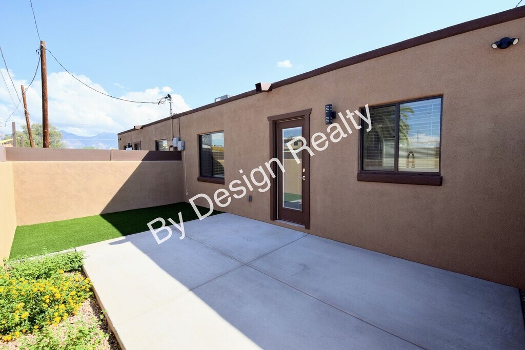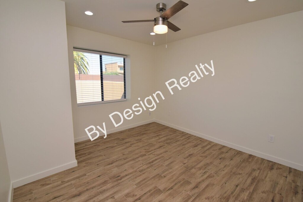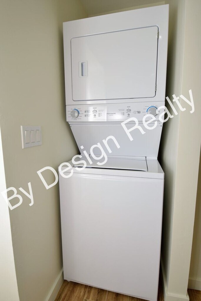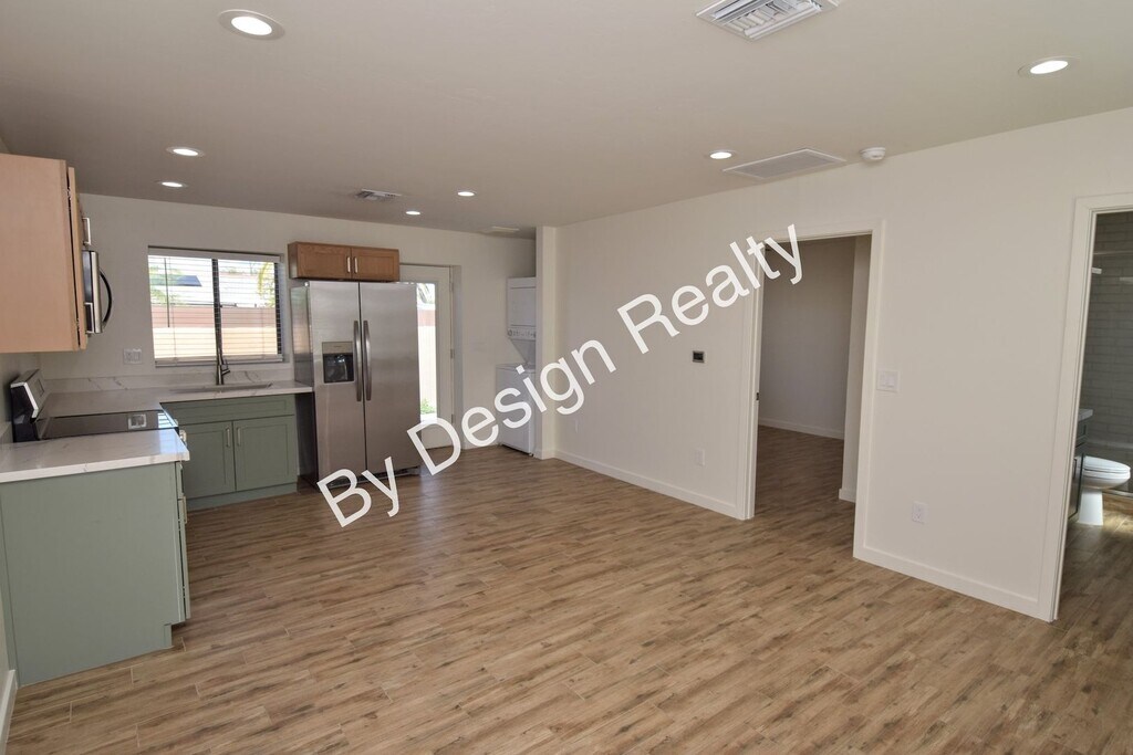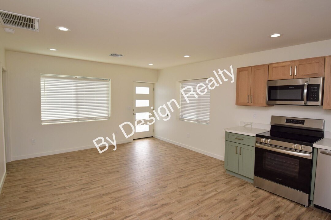 $250 off First Months Rent Discover modern comfort in this stylish 1 Bed 1 Bath Duplex featuring wood-look tile floors throughout and an open, contemporary floor plan illuminated by energy-efficient LED lighting. The kitchen is a true highlight with stainless steel appliances, quartz counters, soft green lower cabinets paired with natural wood uppers for a warm, designer touch. A spa-inspired bathroom offers a floor-to-ceiling tiled walk-in shower with glass doors, while the bedroom includes a ceiling fan and LED lighting for added comfort. Enjoy year-round climate control with central A/C & heat and a programmable thermostat, plus the convenience of a stackable washer and dryer. Step outside to your private west-facing yard with artificial turf and low-maintenance desert landscaping—perfect for relaxation. Additional perks include off-street parking and included water, sewer, and trash. Small dogs under 25 lbs are considered with a refundable deposit and monthly pet rent. This property is offered ONLY to NON-SMOKING TENANTS