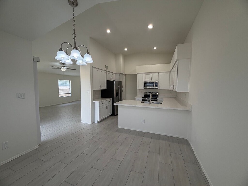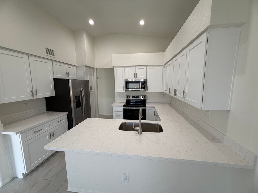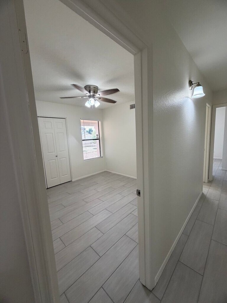 Fully remodeled 3-bedroom, 2-bath home in Glendale, AZ featuring brand new stainless steel appliances and white shaker cabinets paired with beautiful white quartz countertops. The interior showcases newly installed tile plank flooring throughout, creating a fresh feel from room to room. Outside, the property includes a backyard shed for extra storage and there is no HOA. This updated home offers modern finishes and low-maintenance living in a convenient Glendale location.