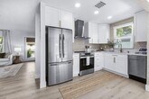 Courtesy of Sycamore Realty & Investments Posted by Andrew Coleman with EXP Realty . Fully Renovated single family home located 2 blocks off the intracoastal in the historic neighborhood of Northwood Harbor that is experiencing significant development growth. Main house features 2 bedrooms, 1 bath, with central a/c and utility closet. Detached studio apartment with 1 bath, full kitchen and mini split. Both units are fully permitted with brand new plumbing, electrical, stucco; impact windows and doors. Featuring recessed lighting, quartz countertops, stainless steel appliances, professionally landscaped grounds with new sod and underground sprinkler system. Fenced backyard with space for a pool. Some of the planned and approved developments just minutes away include: Alba, Olara, The Ritz Carlton. Beautiful rental property with flexible terms.