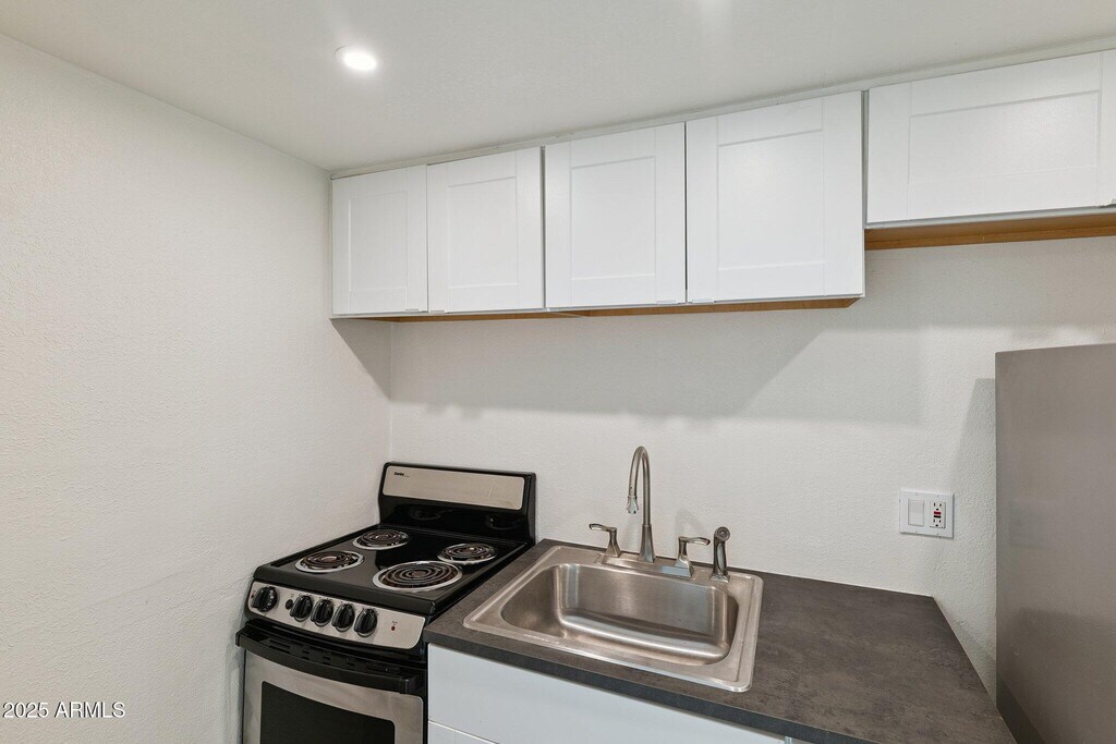 Joseph MaggioreNicely updated efficiency unit- available now! Small, but comfortable, unit features mini split AC and kitchen is complete with electric range & refrigerator. Two small interior closets as well. Bathroom is complete with walk-in shower. Unit does have private patio area, which is the main entrance to the unit. Shared laundry facility onsite. 1 covered parking space included. Water, sewer & trash collection included in rent. Great mid town location is central to everything. Perfect for low cost, simple living.