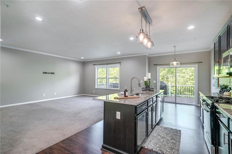 Desirable end-unit townhome in Wilshire Estates, Moon Township, minutes from Robert Morris University, shopping, restaurants, parks, top schools, Pittsburgh Airport, Downtown Pittsburgh and with easy access to I-376, I-79 and Routes 22/30. This move-in ready home features top-of-the-line finishes including a gourmet kitchen with granite countertops, upgraded cabinets, stainless steel appliances, large island and glass tile backsplash, an open main level living/dining area ideal for entertaining, composite private deck, a primary suite with trey ceiling, walk-in closet, soaking tub and walk-in glass shower, two additional well-sized bedrooms with modern neutral finishes, a finished walk-out basement to a private patio and an attached two-car garage. Immediate occupancy available — a unique opportunity to rent a high-end home in a sought-after community.