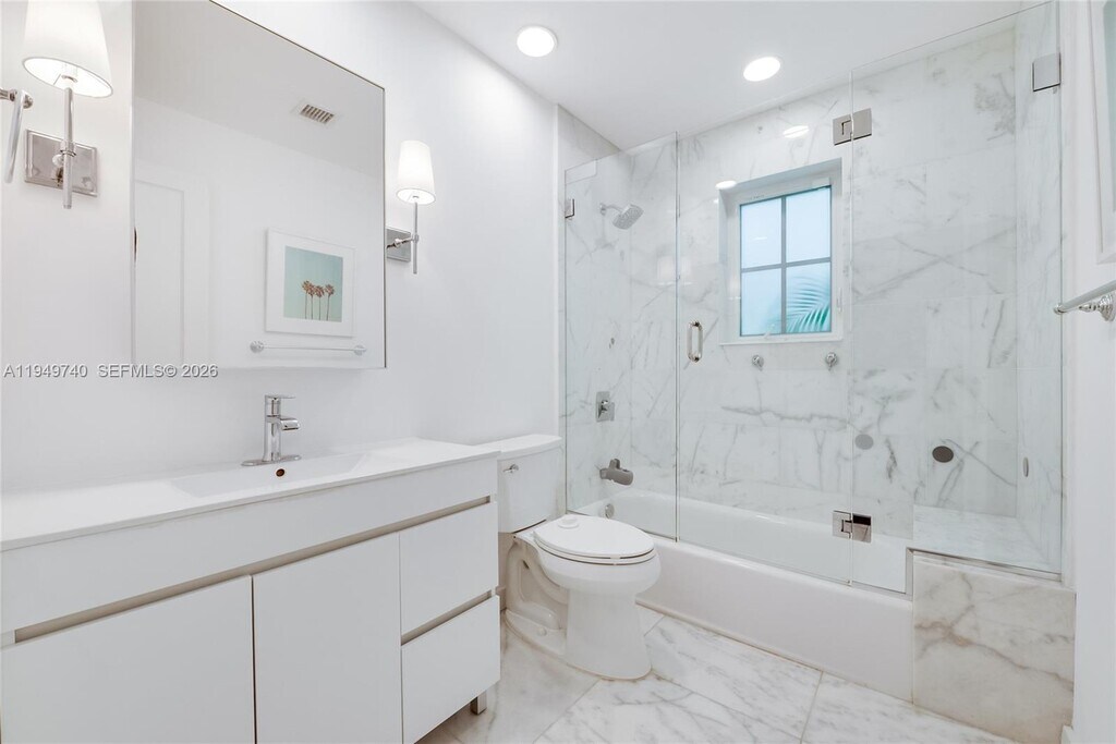 This beautifully pristine and updated Old Spanish home sits in the heart of Coral Gables, just a short stroll from Granada Golf Course and the vibrant downtown district. The main residence features 3 bedrooms and 2 baths, along with a separate guest cottage complete with a full bathroom. Renovated in 2020, the home boasts new plumbing and electrical, impact casement windows and doors, a custom kitchen with Calacatta-style quartz counters and backsplash, marble bathrooms, and refinished hardwood floors. Spacious living and family rooms, a charming fireplace, and hardwood floors throughout create an inviting atmosphere. Fully landscaped grounds with irrigation add to the home’s appeal—classic Gables charm with modern comfort. See Broker remarks for showings. MLS # A11949740