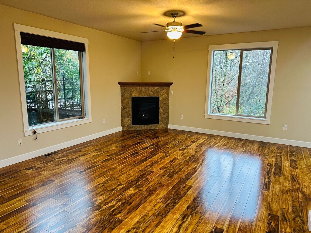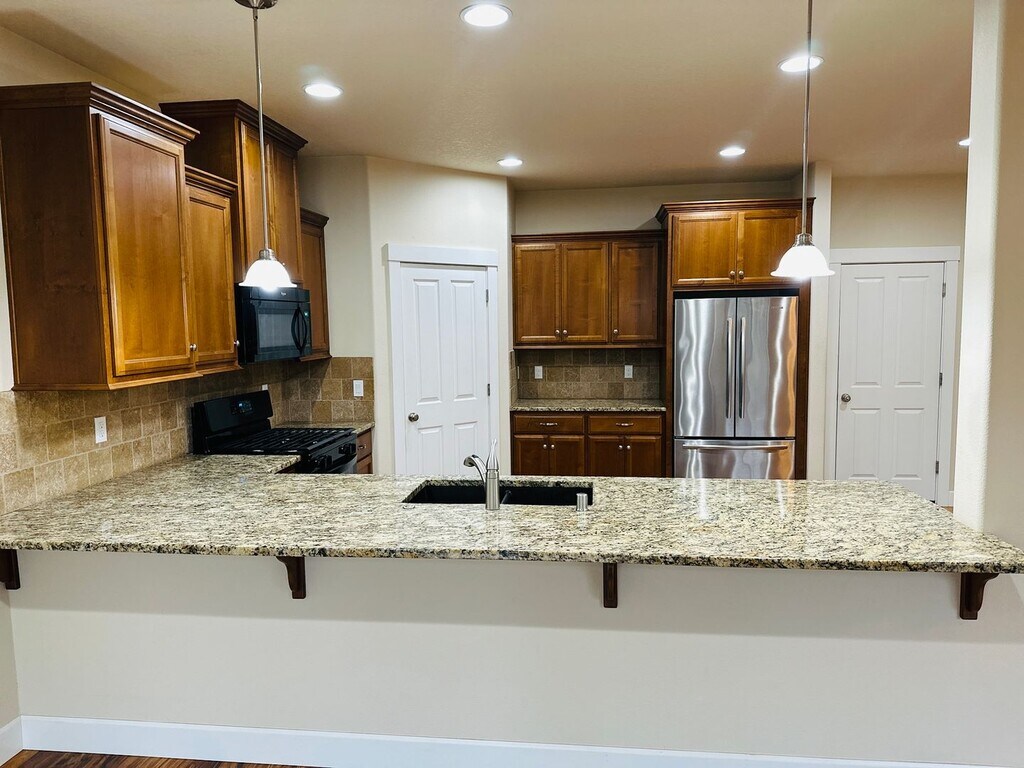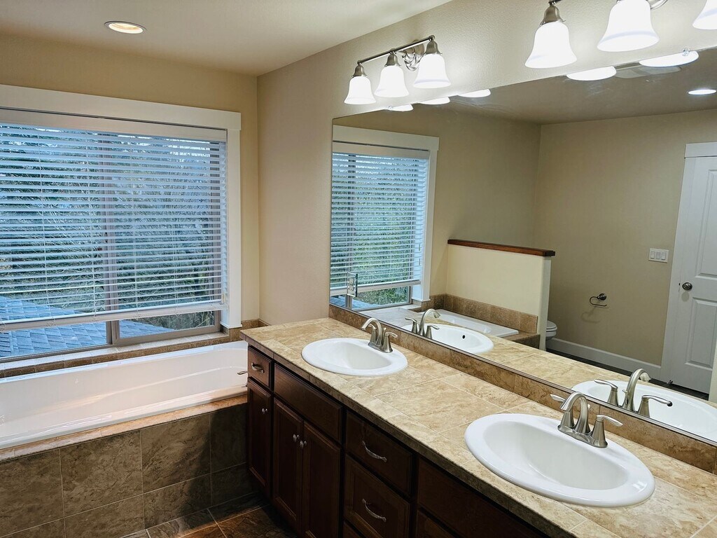 Welcome to this beautiful Ridgefield hot, a stunning 4-bedroom, 2.5-bathroom residence nestled in the heart of Ridgefield, WA. This home boasts a plethora of modern amenities, including stainless appliances, a gas fireplace, a gas range, and walk-in closet. The kitchen is a chef's dream with its granite counters and ample natural light. The great room concept ensures a spacious and open feel throughout the home. The master suite is a private retreat, complete with a soaking tub and dual vanities, as well as vaulted ceilings. Step outside onto the covered deck and enjoy the view of your private greenbelt, beautifully landscaped for your enjoyment. The home is conveniently located close to everything, with parks and walking trails just a stone's throw away. Experience the perfect blend of comfort, convenience, and luxury at the Beautiful Pioneer Canyon Home.