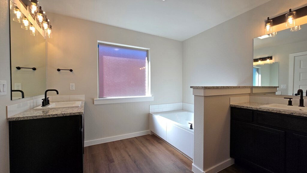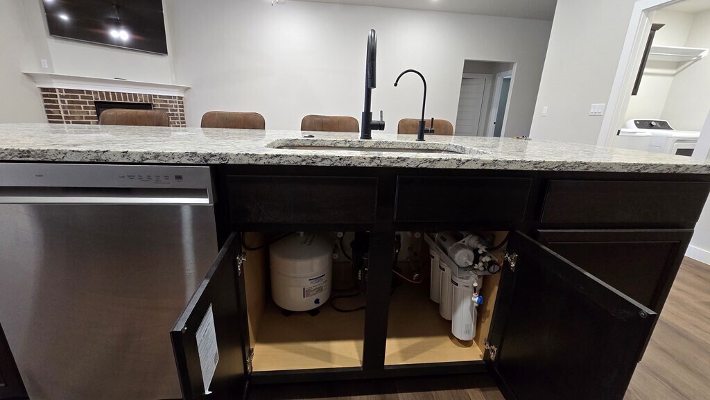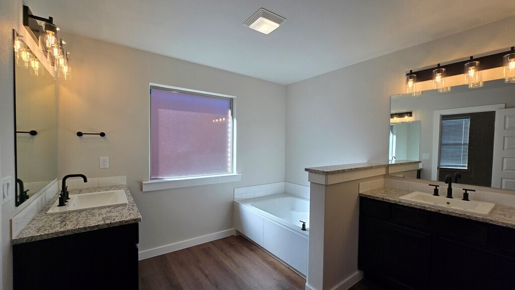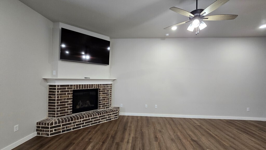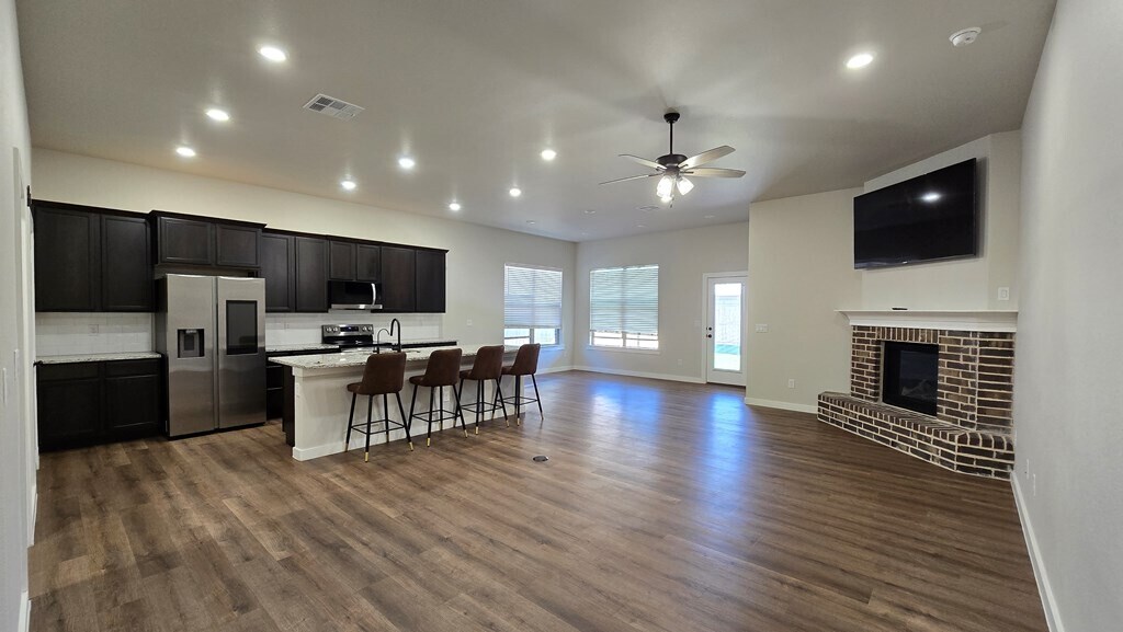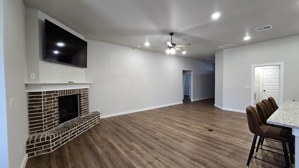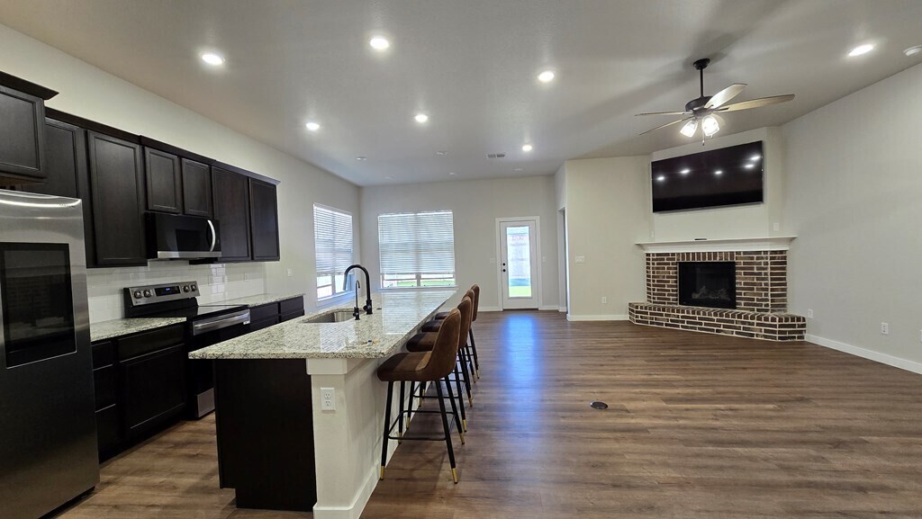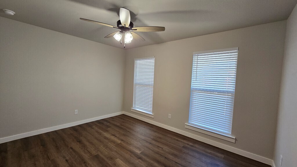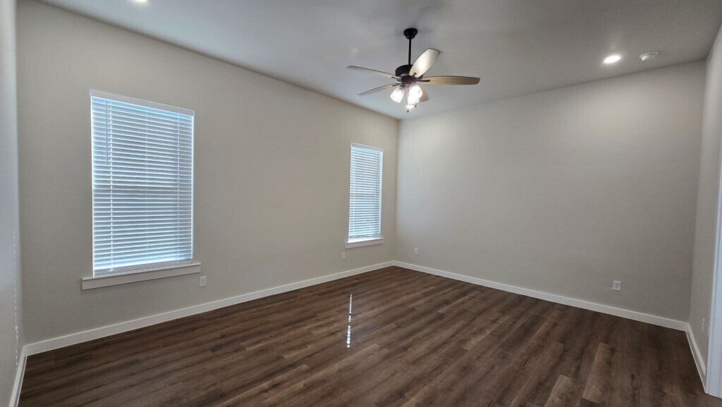 Built in 2024 and very clean. This spacious property offers over 2,000sqft with 4 bedrooms and 2 baths. The master features separate sinks, a separate shower and tub, and a walk-in closet. The home includes a washer and dryer, a modern refrigerator with ice maker, RO system, water softener. Window blinds are installed throughout. The living room includes a mounted TV above the fireplace. The backyard features low-maintenance artificial turf. NO pets. No smokers.