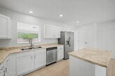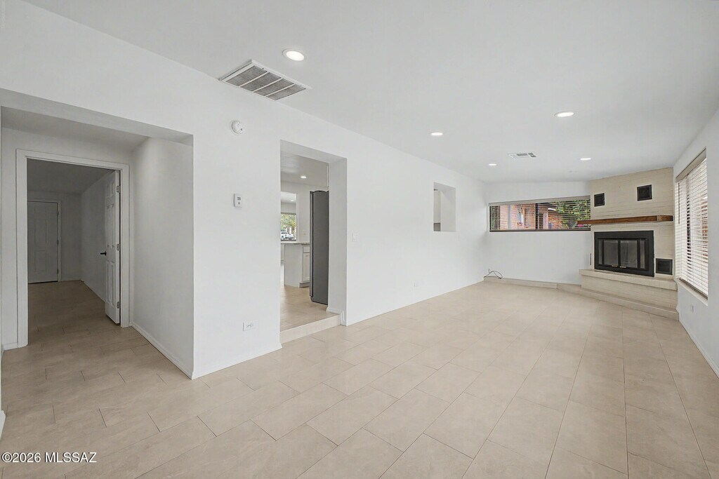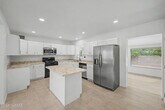 Extensive Remodel of this Rosemont Park 4 Bedroom 3 Bath. 2147 SQ FT. The recent remodel included all new tile floors, kitchen, bathrooms, fixtures, doors, paint, blinds, lighting and more. An expansive front living area has wonderful natural light and due to its size is flexible in its many uses. Renovated kitchen has been opened up and modernized with new cabinets, an island, new appliances and LED lighting. The fireplace room off the kitchen would make a great formal dining room, large office or playroom. The primary bedroom suite has private access, dual ceiling fans, and a gorgeous custom bathroom with marble vanity and floor to ceiling tiled double wide walk-in shower. A large rear yard space has a huge red brick patio and an established citrus tree. MLS ID 22610017