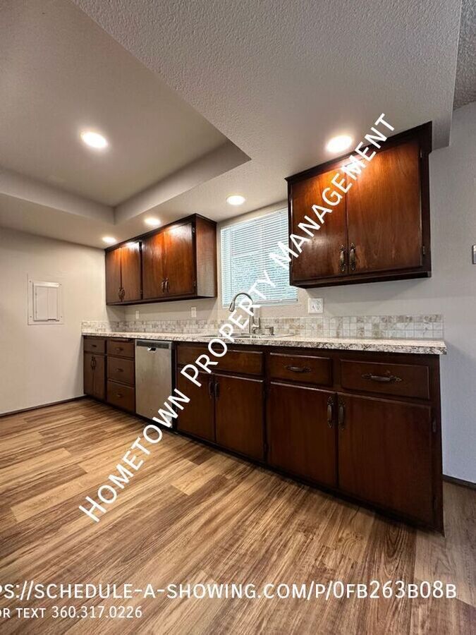 This charming 2-bedroom, 1-bath rental home is available now and move-in ready! Features include convenient washer/dryer hookups, a fully equipped kitchen with electric stove/oven and dishwasher, a 1-car garage, and a sizable backyard with a small patio. Water, sewer, and garbage utilities services are included with the cost of rent. Enjoy both practicality and comfort in a well-maintained, cozy home. **NO SMOKING - NO ROOMMATES** Pets negotiable with monthly pet rent of $35 per pet. 12-month minimum lease. Great location, close to parks, shopping, and area amenities. 25 minute commute to JBLM. To schedule a no contact showing, call/text , or use the link below: