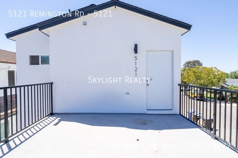Now Leasing for 2026! 2 Bed 1 Bath Brand New Build at 5121 Remington Road – Walking Distance to SDSU! This freshly built unit offers the perfect mix of comfort and location. Enjoy modern finishes, in-unit amenities, and a peaceful private patio. This is a downstairs unit. Property Features: -AC -In unit Washer/Dryer -Dishwasher -Walking distance to SDSU -Upstairs unit -Turfed outdoor area + deck -Street Parking Lease Terms: -12 month lease period -Pets allowed upon approval. Additional $300 pet deposit plus $50/month pet fee required. -All utilities separate from rent. Tenants set up and pay for their own electricity and wifi. $75/month per tenant flat fee for water, sewer, gas & technology fee. $43.60/month per household fee for trash. APPLICATION PROCESS: 1. All tenants (and co-signers, if applicable) must complete an application. 2. Once approved, a $1,500 initial holding deposit is due to reserve the unit and begin lease preparation. 3. The remainder of the security deposit must be submitted within 1 week or by the due date listed on the lease agreement. 4. Applicants must show a minimum monthly income of 2.5x the rent and a credit score of 650 or higher. Guarantors/co-signers are accepted. Follow Us: Stay updated with more listings by following us on Instagram: @aztec.living Listed by Skylight Realty DRE# 02222135