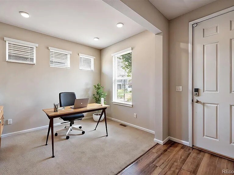 Welcome to this beautifully maintained 3-bedroom + office, 2.5-bath paired home offering nearly 2, 000 sq. ft. of modern living space located in the Village at SouthGate. Built in 2021, this property feels like new with its contemporary finishes and thoughtful design. The open floor plan features a spacious kitchen with updated stainless steel appliances, a bright dining area, and a comfortable living room perfect for entertaining. Upstairs, youll find three generously sized bedrooms, including a primary suite with a private bath and walk-in closet. Enjoy the convenience of a 2-car attached garage and a location directly across from the community park, providing great views and easy access to outdoor recreation. Move-in ready