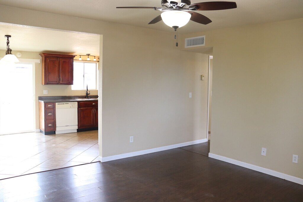 Welcome to this charming 3-bedroom, 2-bathroom home located in the beautiful Sierra Vista, AZ. This home boasts a range of amenities designed for comfortable living. The kitchen is well-equipped with a refrigerator, electric range, dishwasher, and microwave, perfect for all your culinary adventures. The home also features ceiling fans for those warmer days and an evaporative cooler for added comfort. The primary bedroom comes with an en-suite bathroom, complete with a walk-in shower for a spa-like experience. The home also includes a dedicated laundry room, complete with an unwarranted washer and dryer. Outside, you'll find an enclosed backyard, perfect for outdoor activities and a carport for your vehicle. For more information, please contact us at or visit