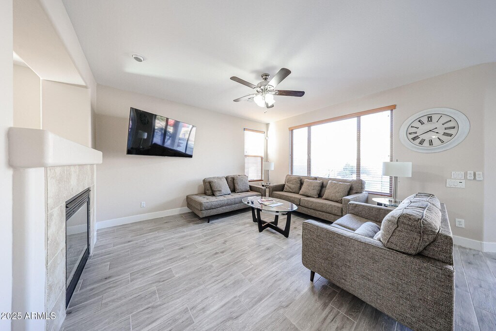 Fully furnished home,updated bathrooms and new countertops. Please see video of home. Take a look at this two-story gorgeous home w/5 bed,3 bath,& 3-car garage! Get comfy with the spacious living/dining room w/neutral tile floor,trending palette,& a two-way fireplace to keep you warm in the cold winter. Spacious great room room perfect for entertaining. The spotless kitchen showcases a plethora of cabinets,granite counters,gas cooktop,double wall oven,SS appliances,a center island,& recessed lighting. The perfectly-sized loft is ideal for a TV area or reading nook. The bright main bedroom enjoys plush carpet,lavish ensuite w/dual sinks,& mirrored closets. Fantastic mountain view in the backyard that includes an extended covered patio & shimmering pool.