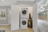 Fully fenced in yard with picket fence, backing to trees, a great for home for your pets or your dream garden! Welcome to 5123 Crittenden Street, a Spanish style 2 bedroom home tucked away in a quiet neighborhood with a yard full of mature trees. Freshly painted throughout, this cozy home features a fully renovated kitchen with unique green cabinets and gold accents with stainless steel appliances including a gas stove. Enjoy your morning coffee on the covered front porch while you overlook the front gardens filled with mature trees (one pecan tree) and native plants. Entering in to the living room, you have direct access into the separate dining area right off the kitchen. On the front of the home is the sunroom, great for an additional bedroom or office space. Hardwood floors throughout, this home offers 2 bedrooms on opposite sides of the property, one near the front living room and one in the back of the property, with a seating area in front of the bedroom. A stacked washer and dryer near the backdoor in the laundry room and additional storage out back in the brand new shed. The backyard is a great space for entertaining on the patio, a private area to enjoy the warm Summer days. Pets considered case by case with deposit. A block away from to the Anacosita Bike Trail, 1.5 miles from downtown Hyattsville and downtown Riverdale including the #1 best BBQ spot in all of Maryland, 2Fifty Texas BBQ. No smoking allowed. Tenant is responsible for all utilities (gas, water, electricity, cable/internet) and lawn maintenance. Lawn care tools are available for renter including lawn mower. Renters insurance required.