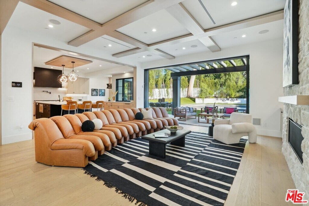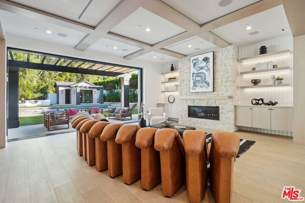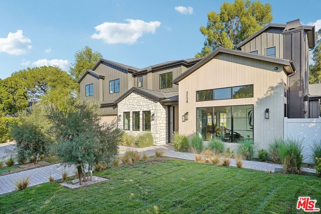 Discover the pinnacle of luxury in this brand-new gated estate located South of the Boulevard in the heart of Tarzana, CA. Built with the finest materials and high-end designer finishes, this secluded residence offers an exceptional living experience combined with the convenience of all the Valley has to offer. On the first floor, step through the oversized front door into an open-concept layout flooded with natural light from expansive windows and adorned with soaring ceilings. The living room, featuring a fireplace and two-story vaulted ceilings with exposed wood beams, exudes elegance. The formal dining room, perfect for hosting dinner parties and gatherings, is highlighted by a stunning wood slat ceiling. The gourmet kitchen is a chef's delight, boasting a massive center island with a breakfast counter, top-of-the-line appliances, a walk-in pantry, and a cozy breakfast nook. Adjacent to the kitchen, the family room offers a beautiful stone fireplace, built-in cabinetry, coffered ceilings, and pocket glass doors that transition effortlessly to outdoor living. Also on the main level, find a downstairs ensuite bedroom, an office with built-ins and a French door leading outside, a laundry room, a mudroom, a movie theater, and a dry bar with a wine fridge. MLS# 26649717