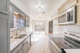 Fully updated and ready for immediate occupancy,this 4-bedroom,2-bath home offers a bright,modern atmosphere with carefully considered details throughout. Light-toned wide-plank wood flooring extends across airy,sunlit living areas,centered around a classic brick fireplace complemented by custom built-ins. The refreshed galley kitchen showcases quartz countertops,stainless steel appliances,stylish open shelving,and ample space for cooking and preparation. The generous primary suite provides a relaxing escape,complete with a spa-inspired bathroom featuring a soaking tub,walk-in tiled shower,and dual sinks. Outside,enjoy a secluded,fully enclosed backyard with easy patio access,perfect for unwinding or hosting gatherings. This property presents beautifully and offers an exceptional everyday living experience. Schedule your showing today!