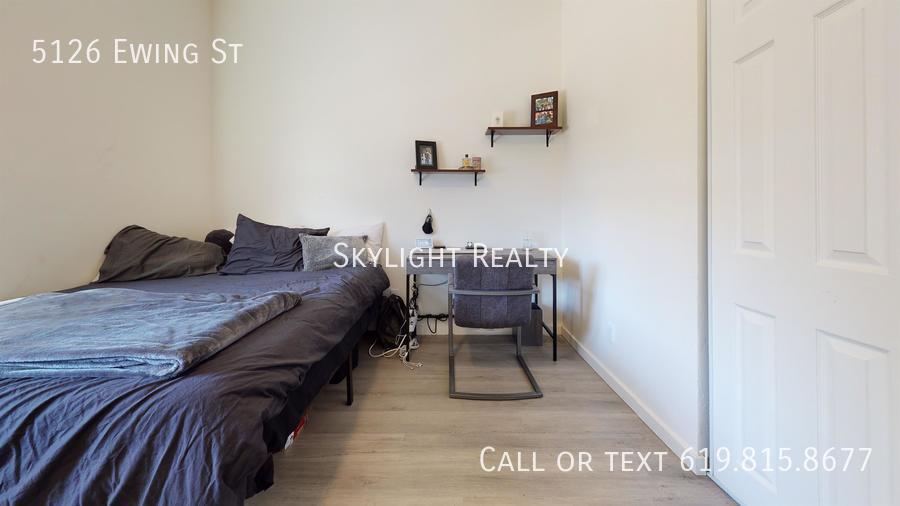Now Leasing for 2026! 4 Bed 2 Bath Remodeled Home at 5126 Ewing St – Walking Distance to SDSU! Book a Tour: We'd love to show you around! Call us at to schedule a tour. Property Features: -Fully remodeled -In unit Washer/Dryer -Dishwasher -Large Private Patio -Single level home -Hardwood (vinyl) flooring throughout -Walking distance to SDSU Lease Terms: -12-month lease period -Pets allowed upon approval. Additional $300 pet deposit plus $50/month pet fee required. -$43.60/month per household fee for trash. -All utilities separate from rent. Tenants set up and pay for their own electricity and wifi. $75/month per tenant flat fee for water, sewer, gas & technology fee. -Street parking APPLICATION PROCESS: 1. All tenants (and co-signers, if applicable) must complete an application. 2. Once approved, a $1,000 initial holding deposit is due to reserve the unit and begin lease preparation. 3. The remainder of the security deposit must be submitted within 1 week or by the due date listed on the lease agreement. 4. Applicants must show a minimum monthly income of 2.5x the rent and a credit score of 650 or higher. Guarantors/co-signers are accepted. Follow Us: Stay updated with more listings by following us on Instagram: @aztec.living Listed by Skylight Realty DRE# 02222135 Single family home near SDSU