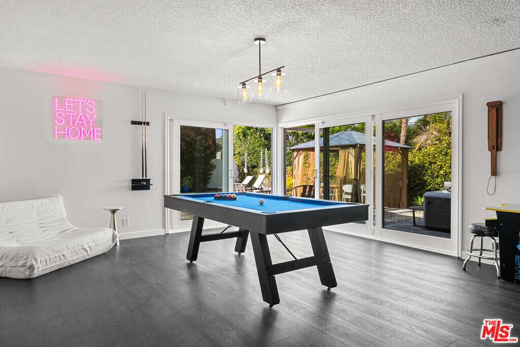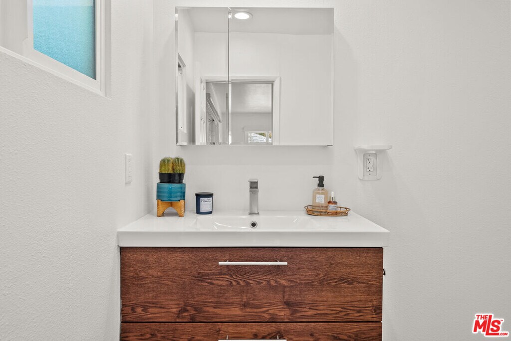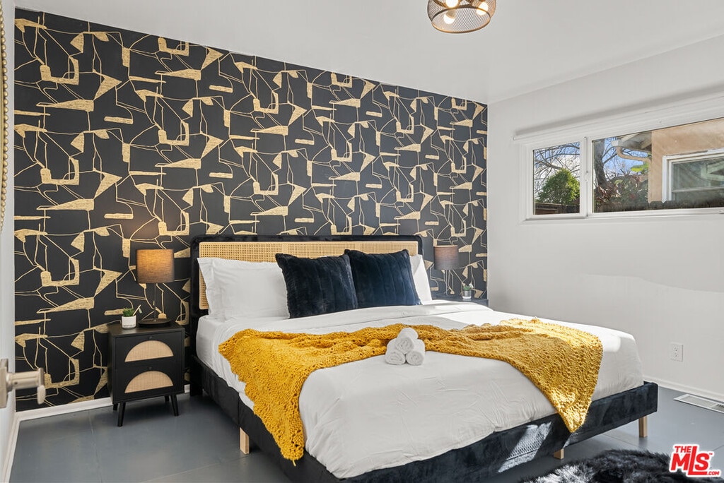 In the heart of Encino, this modern retreat showcases a seamless blend of classic mid-century warmth and fresh contemporary style, perfectly crafted for effortless California living. Step through the entry and into a light-filled living room, where vaulted beamed ceilings and a striking stone fireplace create a sense of warmth and quiet sophistication. Natural light floods the space, accentuating clean architectural lines and an open, airy flow. The layout transitions seamlessly into a spacious family room wrapped in glass, with sliding doors that open directly to the backyard blurring the line between indoor comfort and outdoor living. The kitchen stands as a vibrant focal point, featuring colorful quartz countertops, custom cabinetry, and state-of-the-art stainless steel appliances designed to elevate both everyday living and entertaining.The private primary suite offers a calm and inviting escape, complete with a generous walk-in closet and a beautifully remodeled bath with a frameless glass shower and modern finishes. Two additional bedrooms offer flexibility for guests, a home office, or a creative studio.Step outside to a resort-style backyard designed for true California living with a heated pool, spa, multiple patios for lounging or dining, and mature privacy landscaping. Whether hosting vibrant gatherings or enjoying a quiet morning by the water, the setting delivers an unmatched sense of ease and lifestyle. Additional highlights include a fully equipped gym, in-unit laundry, central air conditioning, built-ins throughout, and ample parking with both a garage and driveway. Set in one of Encino's most desirable neighborhoods, moments from Ventura Boulevard's premier dining, shopping, and amenities, this home embodies refined design, effortless functionality and elevated California living. MLS# 25549701