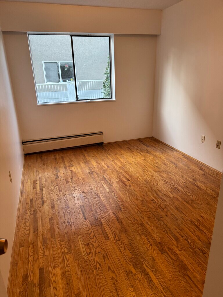 Large 2 bedroom apartment with a deck on parklike setting. Close to Metrotown and Royal Oak Skytrain stations. Includes Heat, 1 underground Parking, and small storage Locker. Street Parking also available. Coin shared laundry.