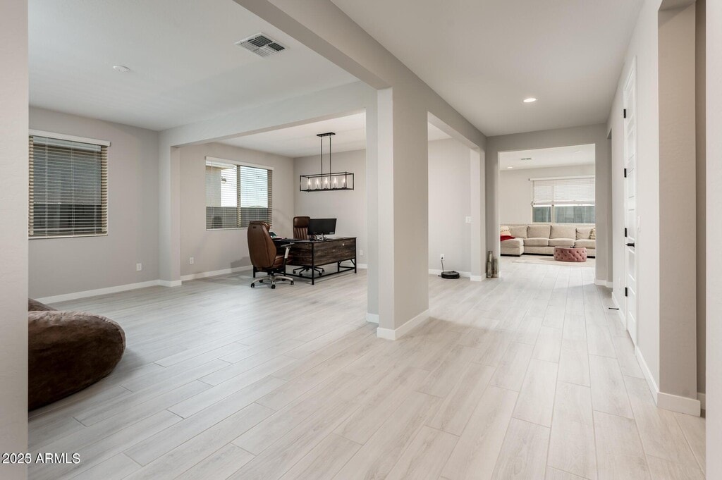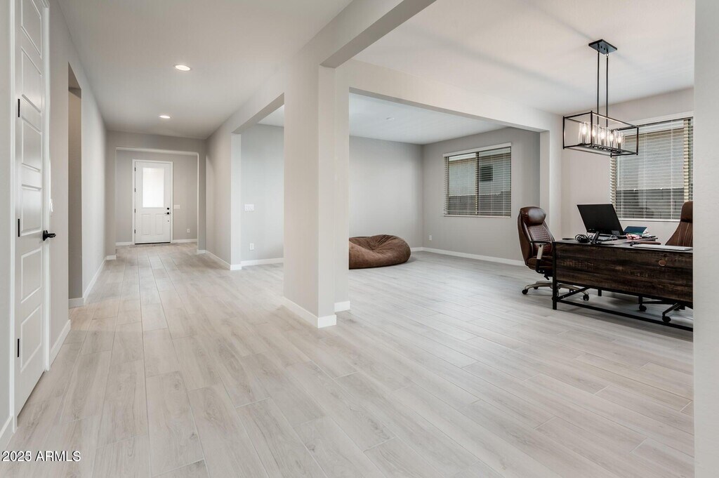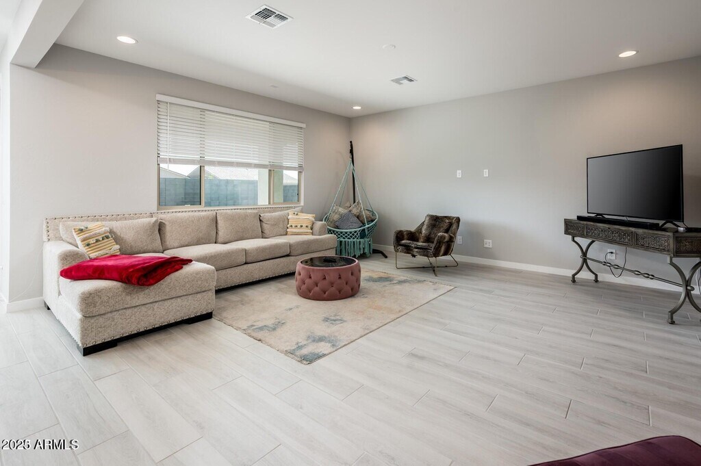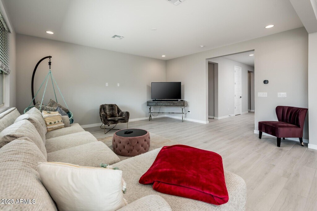 TENANT OCCUPIED UNTIL 09/30. Welcome to this stunning single-level rental in a highly desirable and fast-growing area! This home offers 3 spacious bedrooms,2.5 bathrooms,and a 3-car tandem garage. A charming front porch welcomes you inside to a foyer that flows into a large formal dining room,a versatile flex space,and the gourmet kitchen. The kitchen is beautifully upgraded with stainless steel appliances,42'' upper cabinets,quartz countertops,and a stylish tile backsplash. The owner's suite features a luxurious bath with a tile-surround shower. Sitting on a pool-sized lot,the backyard backs to a greenbelt and has single-story neighbors for added privacy. The location is unbeatableclose to multiple schools,shopping,dining,and surrounded by exciting community growth.