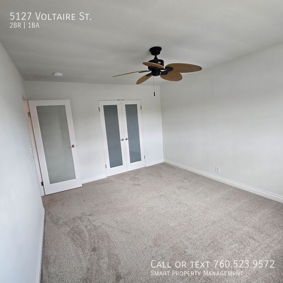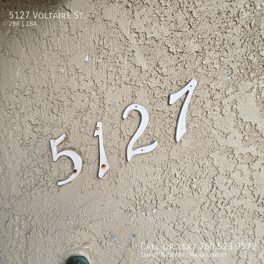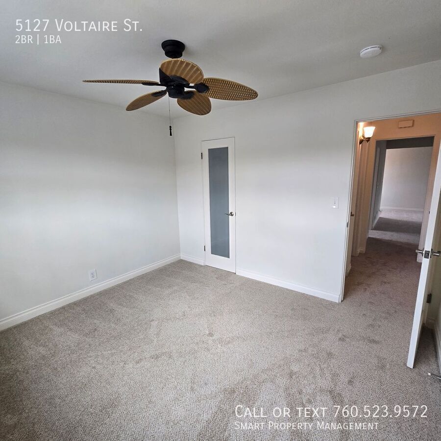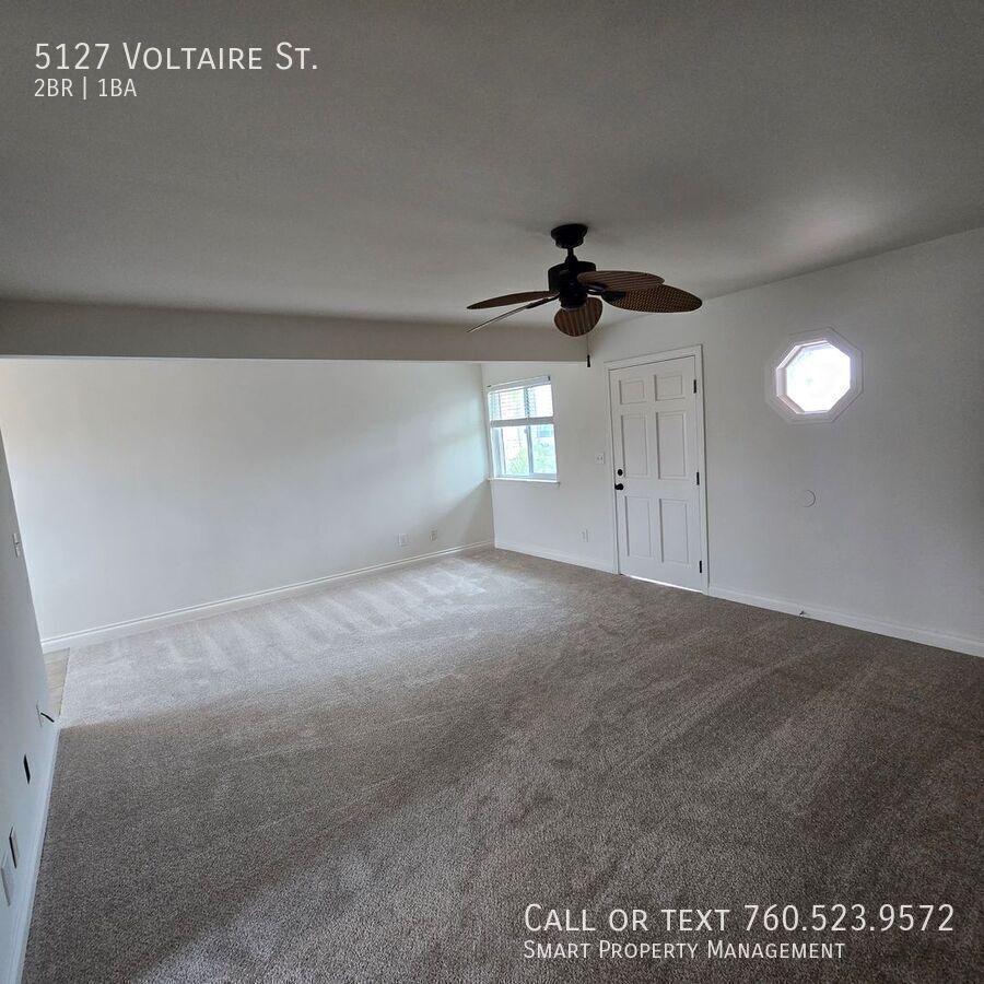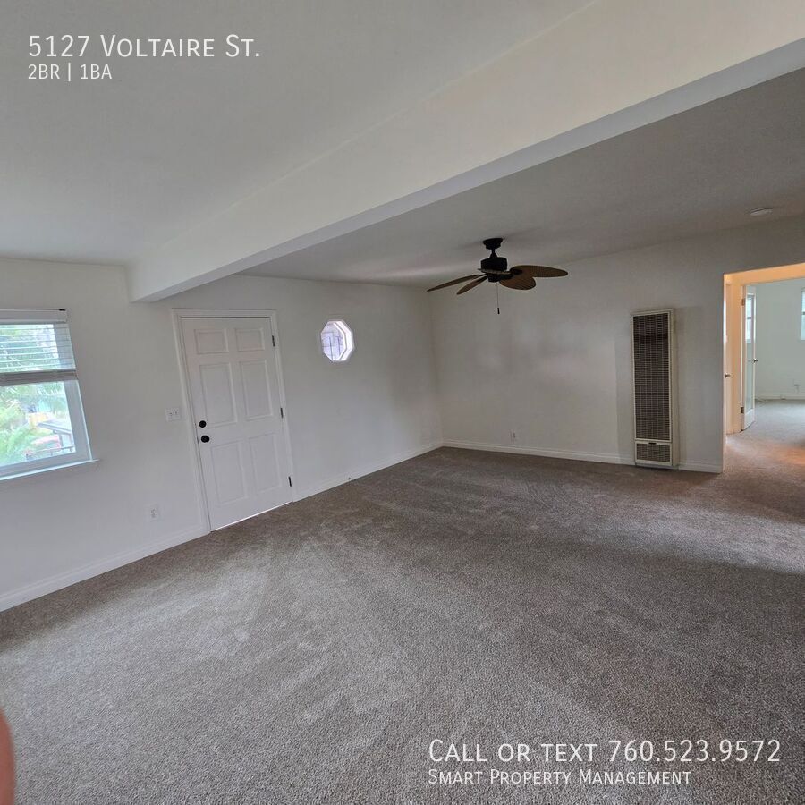 5127 Voltaire St San Diego Ca 92107 Great 2BR apartment. Clean NEW FRESH paint. NEW Carpets throughout. And all new window coverings. Oversized one car garage! Flex space for small office or Dining. Rent includes Water, Sewer and Trash! Great for Military working San Diego Area ! Pet Friendly, Pet Rent $50.00/ mo! No dangerous breeds please. Looking for a Clean Apt? Nicely Appointed? Close to the Beach? In a quiet, respectful building? This is it!! Please have good credit, good landlord history. One Year Lease $3450.00 per month. For more information, to set up a showing, or to get application information, please: call or visit our website at