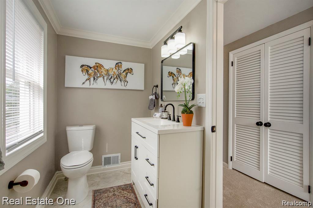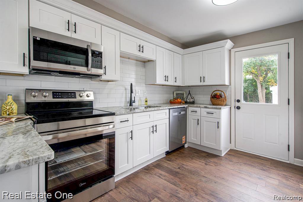 Beautifully updated in 2025 and super clean, this spacious colonial sits on nearly an acre in highly desirable Northville Township and is available for lease within the award-winning Northville school district. A wide covered front porch welcomes you inside to a thoughtfully designed floor plan. The bright living room features a large bay window that fills the space with natural light and flows easily into the dining area and renovated kitchen. The kitchen offers granite countertops, white soft-close cabinets, a ceramic tile backsplash, brand-new stainless steel appliances, and a peninsula with pendant lighting and seating. A door from the kitchen leads directly to the backyard patio, making outdoor dining and entertaining convenient. On the other side of the main level, the spacious family room showcases a vaulted ceiling, brick fireplace, ceiling fan, and several windows that bring in plenty of natural light. A sliding door provides access to the backyard, creating a comfortable indoor-outdoor connection. The main floor also includes a full bathroom, laundry area, and a flexible room that can be used as a bedroom or home office. Upstairs, you’ll find three generously sized bedrooms with plush carpeting and a modern updated bathroom. Luxury laminate flooring runs throughout the main level and is accented by crown molding in the living, dining, and bathroom areas. Outside, the large fenced backyard features an extended patio that stretches across the back of the home, perfect for relaxing or hosting guests. Major updates including a newer furnace, air conditioning system, water heater, and roof add extra comfort and peace of mind for future tenants.