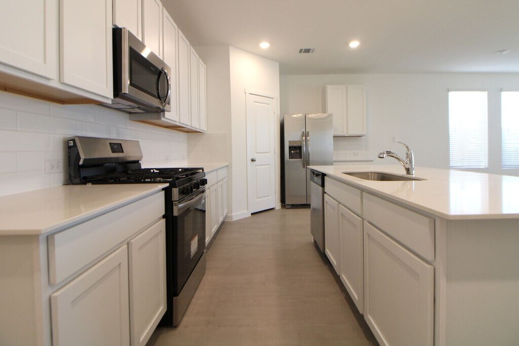 Brand-new 4BR/3BA home with an open layout, quartz countertops, stainless steel appliances, slow-close cabinetry, and a large center island. All bedrooms are on the main level, including a spacious primary suite with walk-in closet, dual-sink vanity, and step-in shower. A private secondary ensuite plus two additional bedrooms with a shared full bath offer flexibility for family or guests. Upstairs, a loft provides the perfect space for a game room, media room, or home office. Enjoy a covered patio and low-maintenance backyard. The new community will feature resort-style amenities including a pool, clubhouse, playground, and fitness center. Served by Schertz-Cibolo-Universal City ISD schools, with easy access to Cibolo, Schertz, New Braunfels, I-35, and JBSA Randolph. Just minutes from Santikos Entertainment, EVO, and the upcoming 72-acre Schertz Station development featuring Portillo's, CAVA, Dave's Hot Chicken, Panera, and more - the area is booming with dining, shopping, and family fun. All breeds of pets considered case-by-case. Non-smoking home. Schedule your showing today!